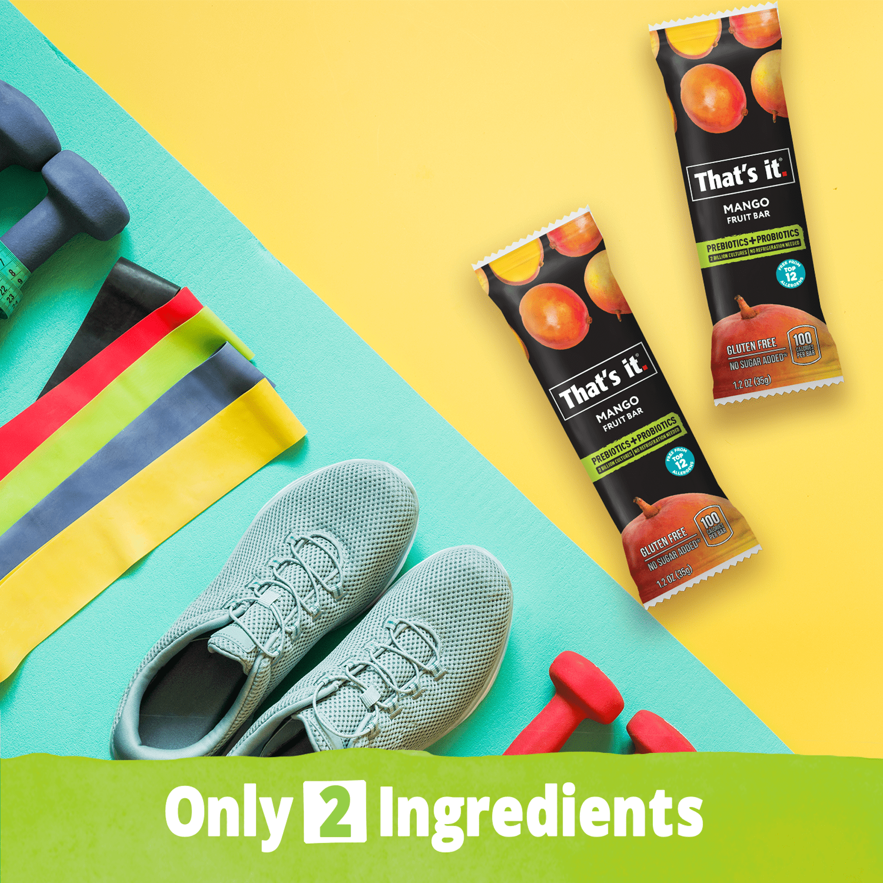 Start your day off right with That’s It Fruit Bars. Each bar contains 2 servings of real fruit with a delicious taste to perk up your energy levels. Enjoy the delicious, chewy taste of real fruit. Contains added sugar, concentrates, or purees. Great for snacking on the go. Includes 2 real fruit servings in each bar.
