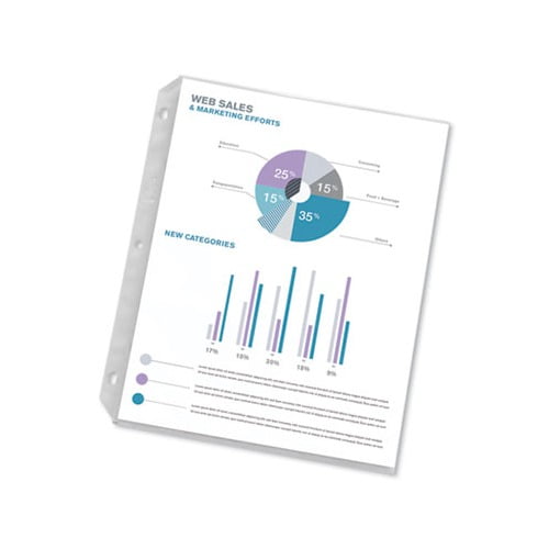 The solution to keeping your important papers protected is cleardiamond clear, in fact. These Heavyweight and Super Heavyweight Sheet Protectors are designed both to protect your papers and show them off impressively. Diamond-clear material delivers a crisp view of your pages as well as durable protection. Easy Load feature makes inserting sheets fast and easy. The acid-free and archival-safe material ensures your pages stay in top condition and that print remains on your papers, rather than transferring to the sheet protector. The clear binding edge rounds out the professional look of your presentations and other documents. For 11 x 8.5 Inserts. Load Orientation: Top Sheet Capacity: 10 Sheet Protector Type: Ring Binder Insert Size: 8.5 x 11.