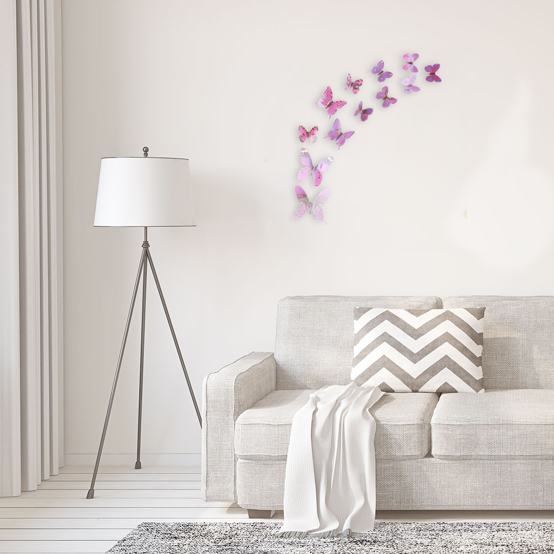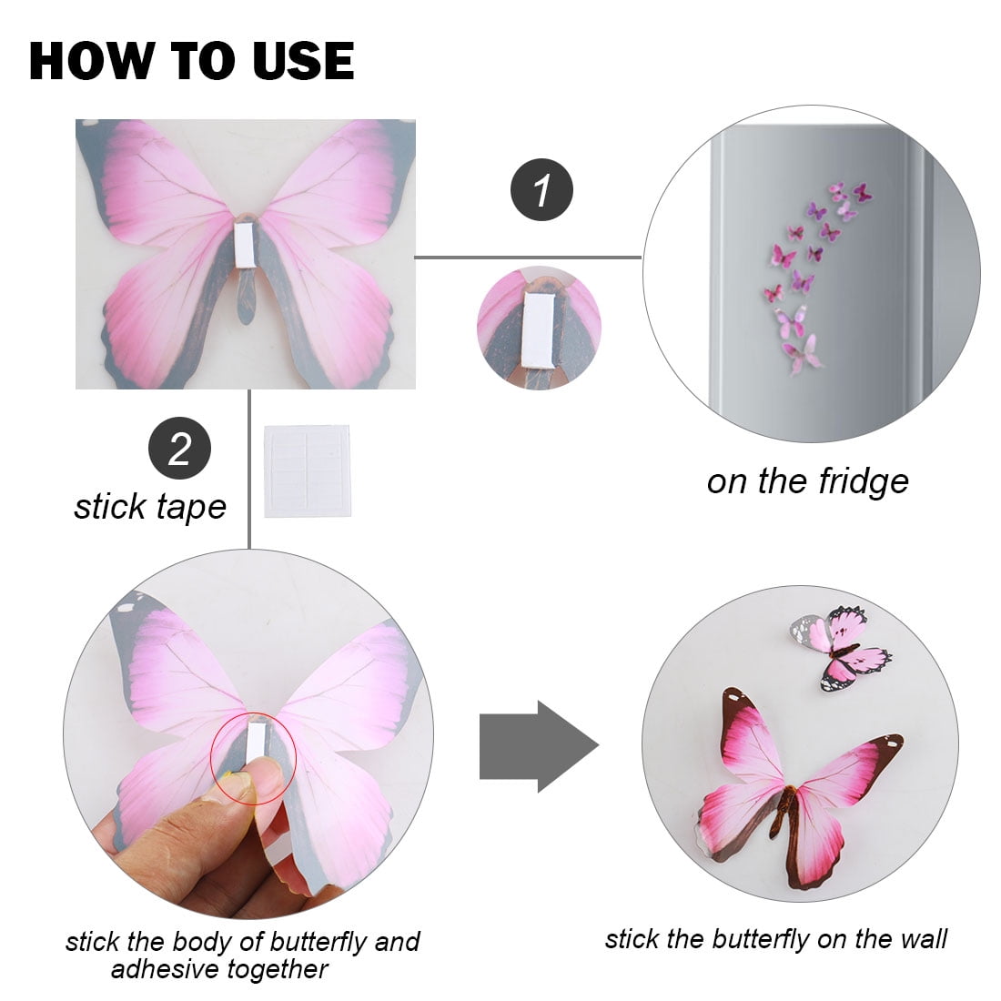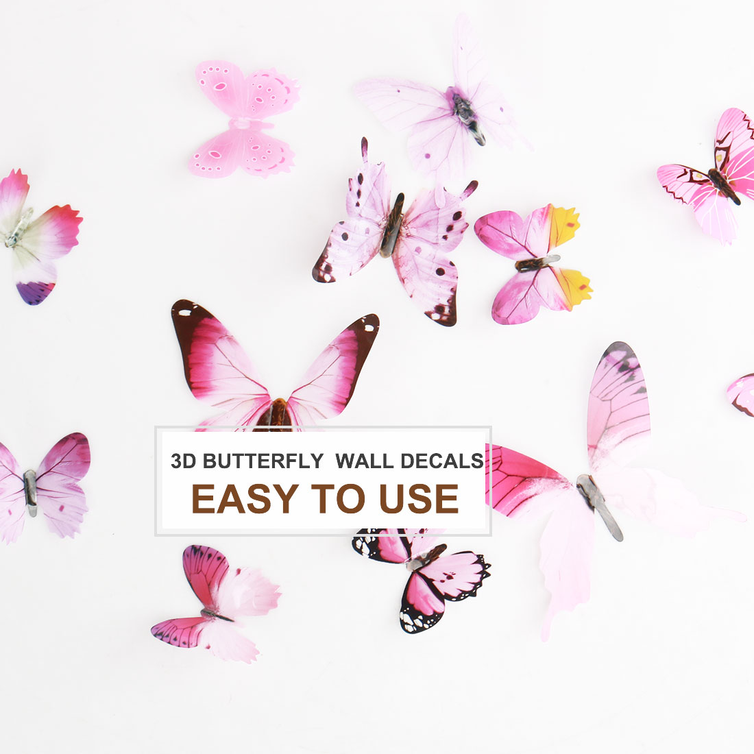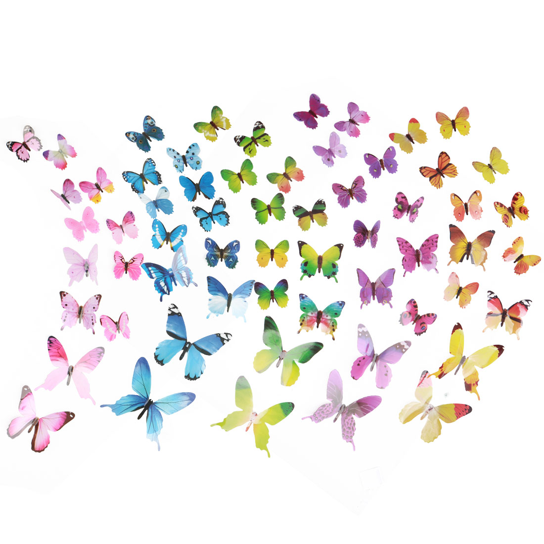 Unique Bargains 60 Pcs 3D Butterfly Wall Sticker Removable Delicate Stickers Art Decals for Bedroom Party
