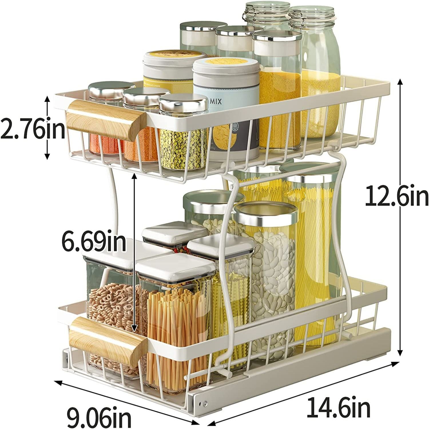 Kitchen and Bathroom Multifunctional Cabinet Organizer with Wooden Handle, Strong and Durable, Not Easy to Deform.