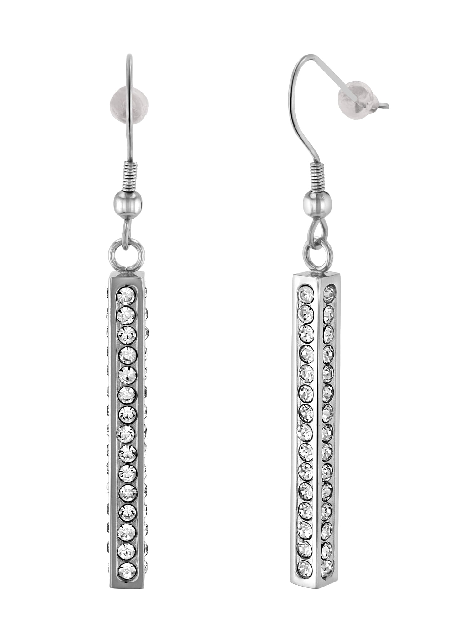 Womens Stainless Steel Glass Dangle Earrings