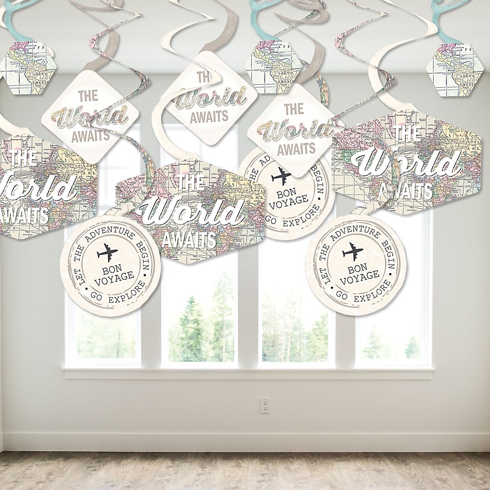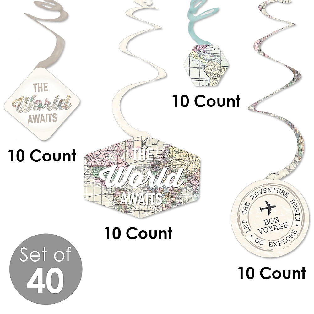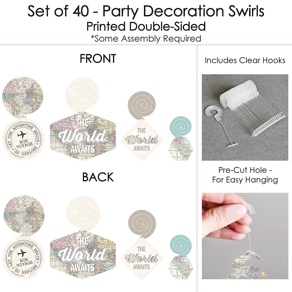 World Awaits – Travel Themed Party Hanging Decor – Party Decoration Swirls – Set of 40