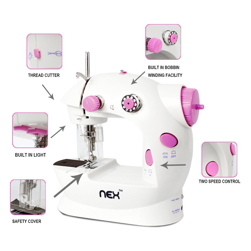 NEX NX-BSM202A Portable Embroidery Mini Sewing Machine Double Speed with Extension Table Foot Pedal