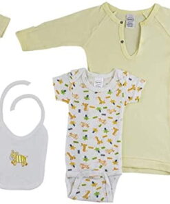 Newborn Baby 7 Pc Unisex Layette Set Yellow White with Animal Prints