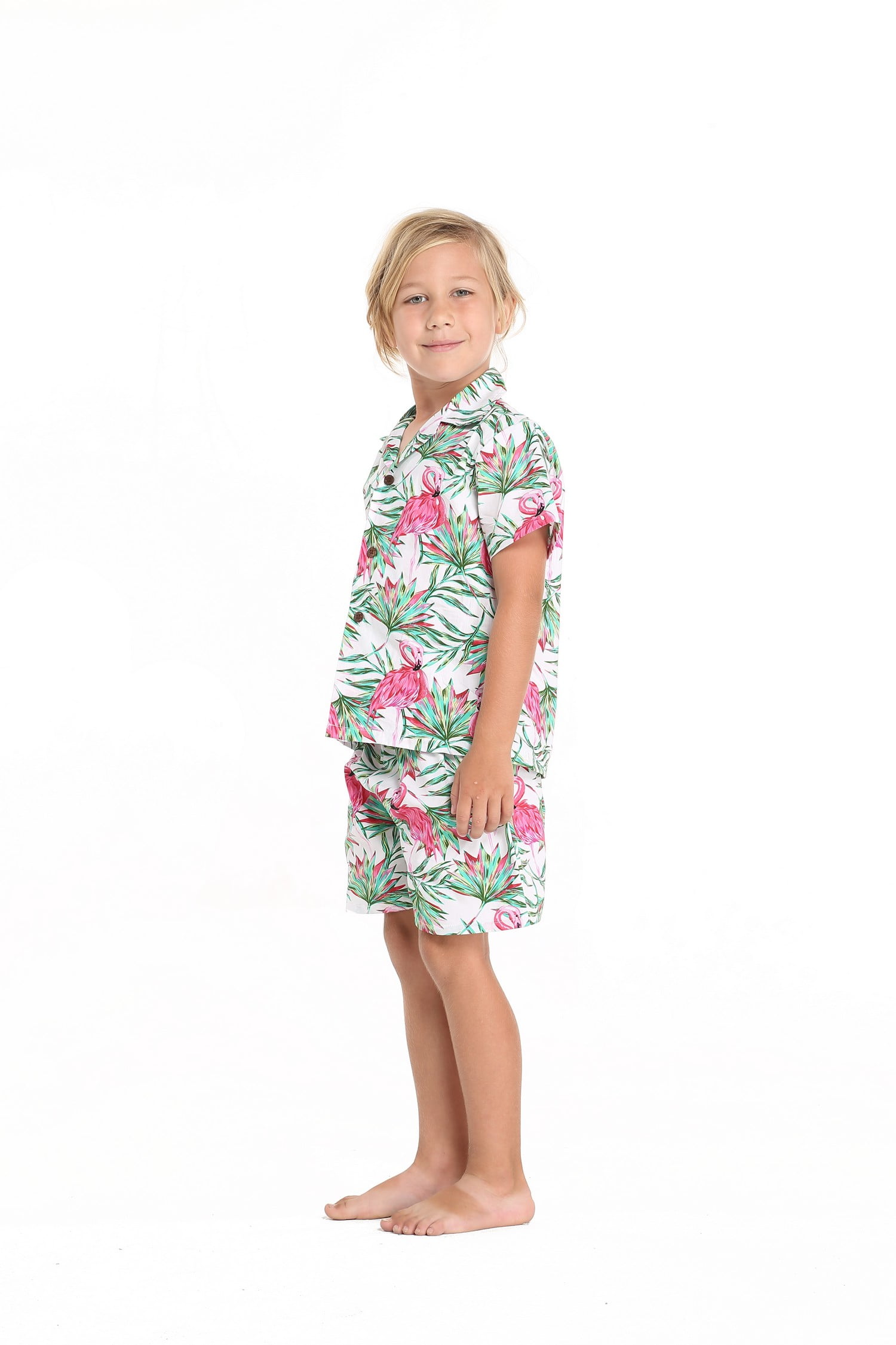 Hawaii Hangover Boy Aloha Luau Shirt Cabana Set in Flamingo in Love