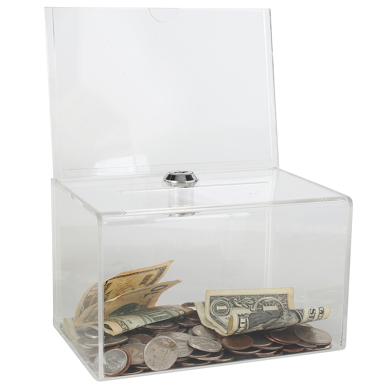 MCB Clear Acrylic Donation Collection Box with Back 4 x 6 Sign Display With Lock
