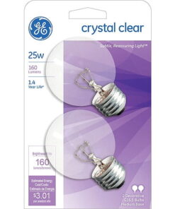 GE Incandescent 25-Watt Light Bulbs, Crystal Clear Decorative Mini Globe, G16.5, E26 Medium Base, 1-Year Life, 2pk