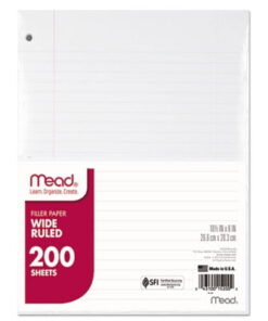 Mead-1PK Filler Paper, 3-Hole, 8 x 10.5, Wide/Legal Rule, 200/Pack