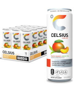 CELSIUS Essential Energy Drink 12 Fl Oz, Peach Mango Green Tea (Pack of 12)