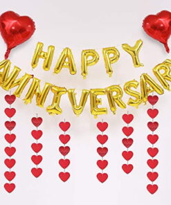 Happy Anniversary Balloons, 16 Inch Happy Anniversary Decoration Balloons with Red Foil Balloon Heart Hanging for All Ages Wedding Anniversary Decorations