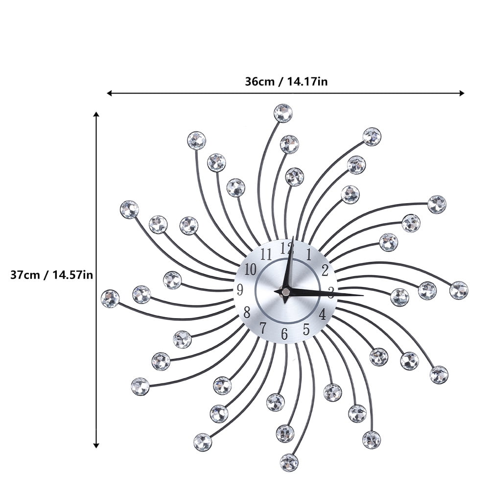 Wall Clock for Living Room Office, Decorative Clock,Sparkling Bling Metallic Silver Flower-Shaped Wall Clock for Living Room Office