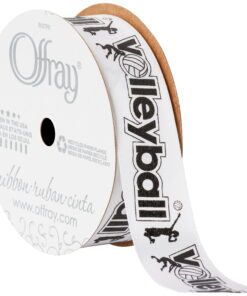Offray Ribbon, Black White 7/8 inch Volleyball Satin Ribbon, 9 feet