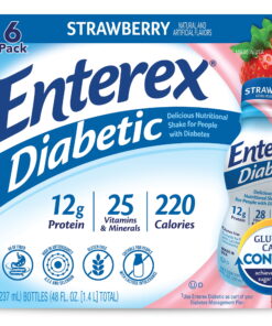 Enterex Diabetic Strawberry Flavor, Nutritional Meal Replacement Shake for People with Diabetes, Can Help Manage Blood Sugar, 8 fl oz, 6 Pack
