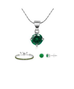 Paris Jewelry 18k White Gold Plated Heart 3 Carat Created Emerald Full Set Necklace 18 inch