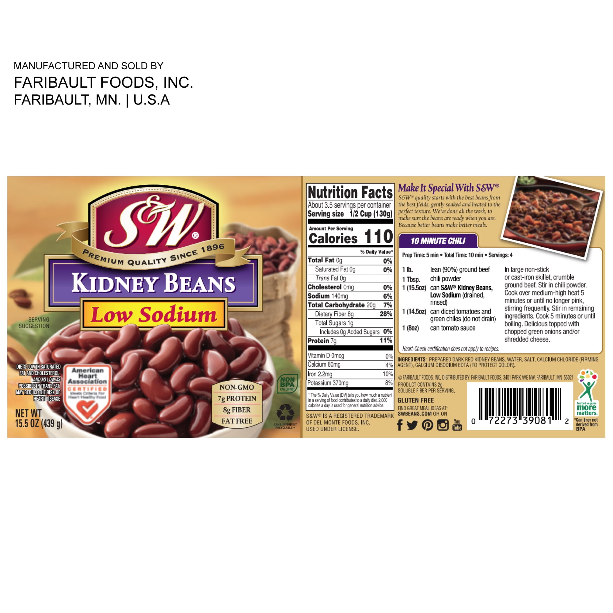 (12 Pack) S&W – Low Sodium Canned Kidney Beans, 15.5 Ounce Can, New