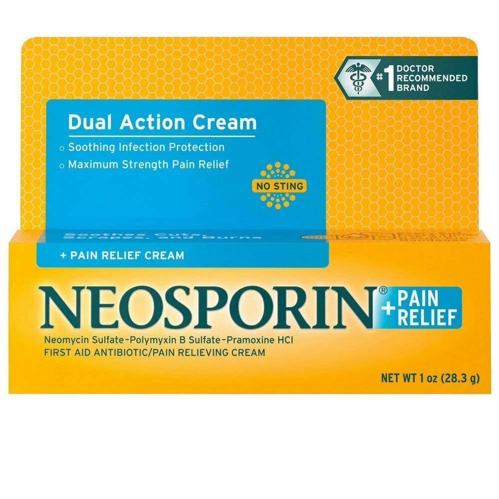 Neosporin + Pain Relief First Aid Antibiotic/Pain Relieving Ointment and Cream help prevent infection and provides temporary relief of pain or discomfort in minor cuts, scrapes, and burns.