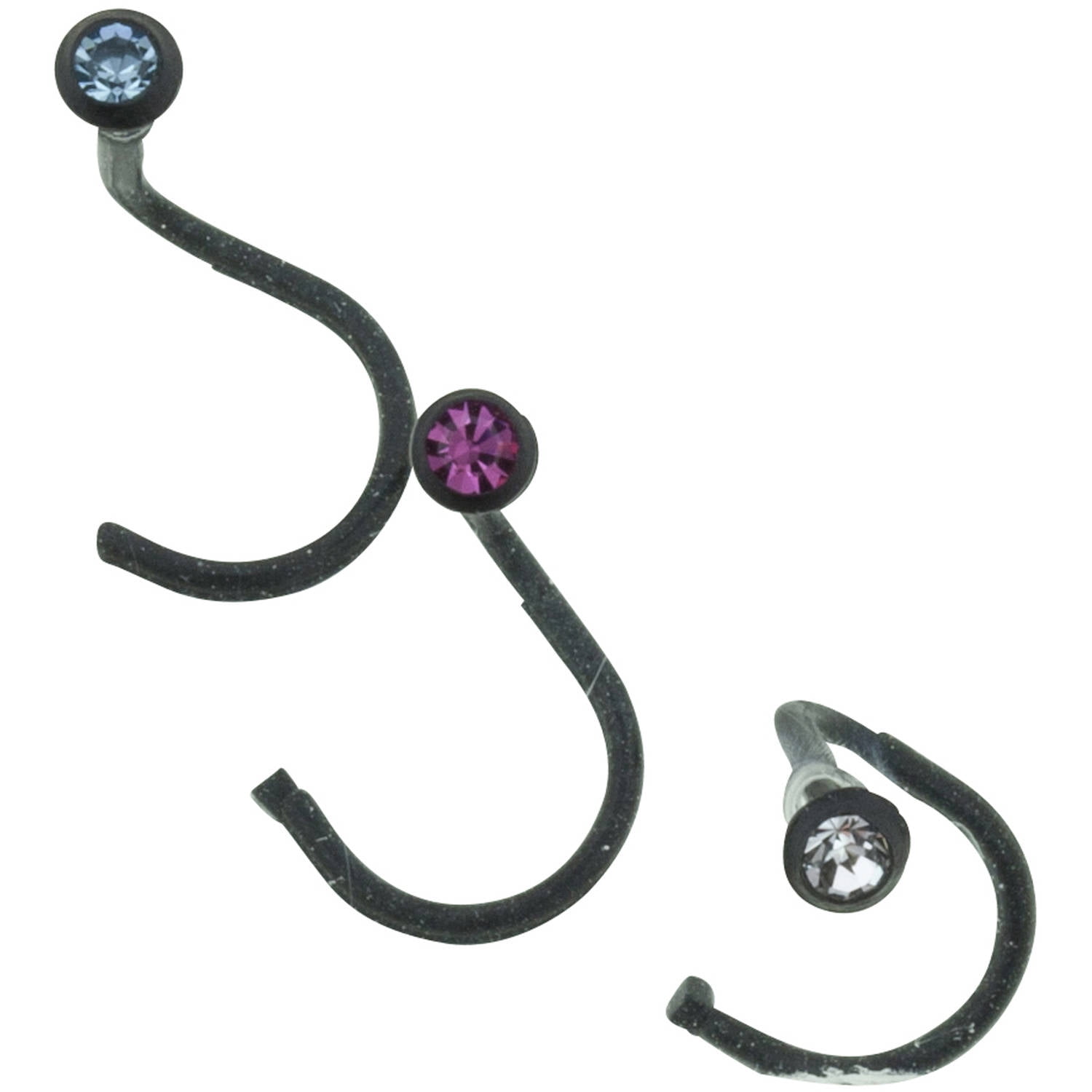 22G Crystal Black Stainless Steel Nose Screw Trio