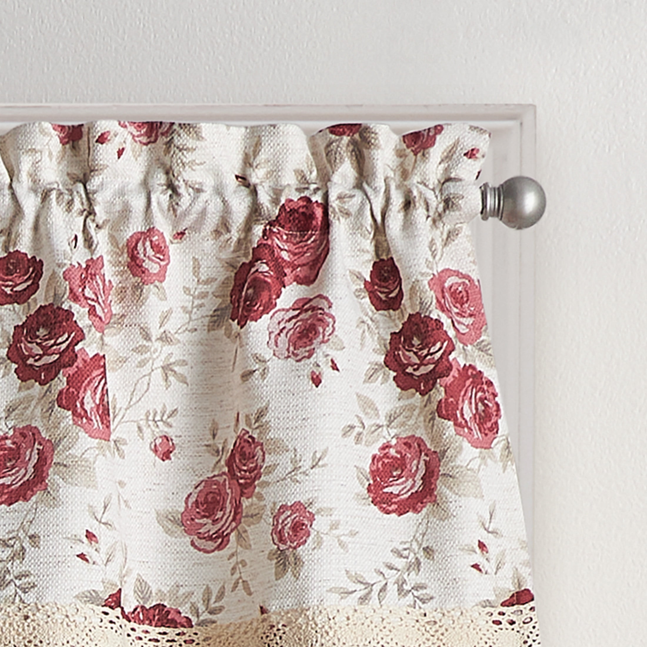 Curtainworks Antique Rose Indoor Polyester Light Filtering Rod Pocket Valance, Red, 54′ x 14′