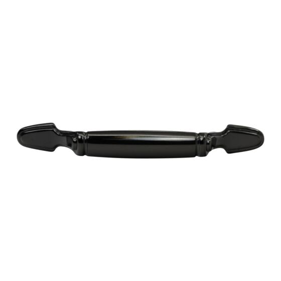 Elegant black nickel finish handle, with ornate mid-century details with a sleek modern look.