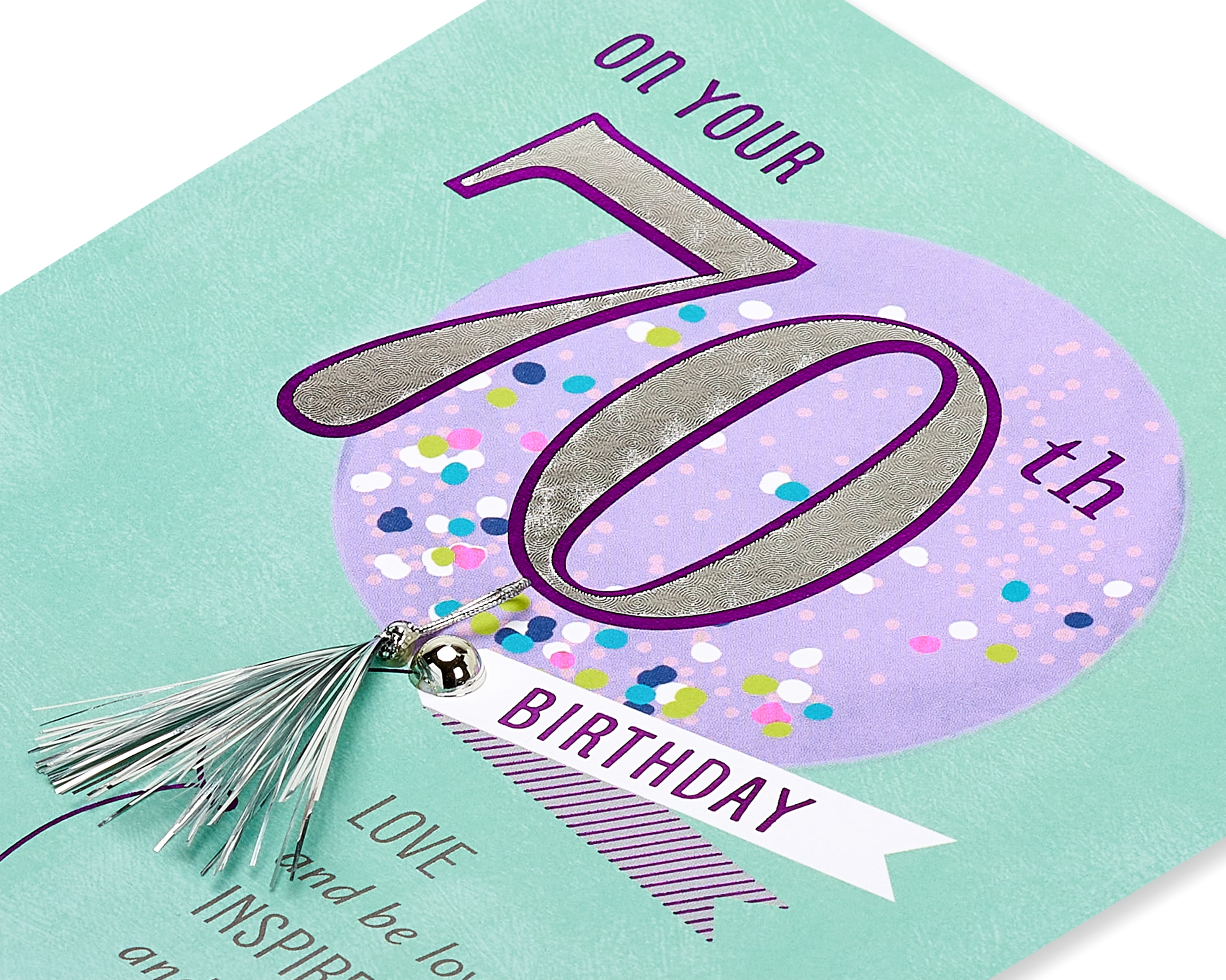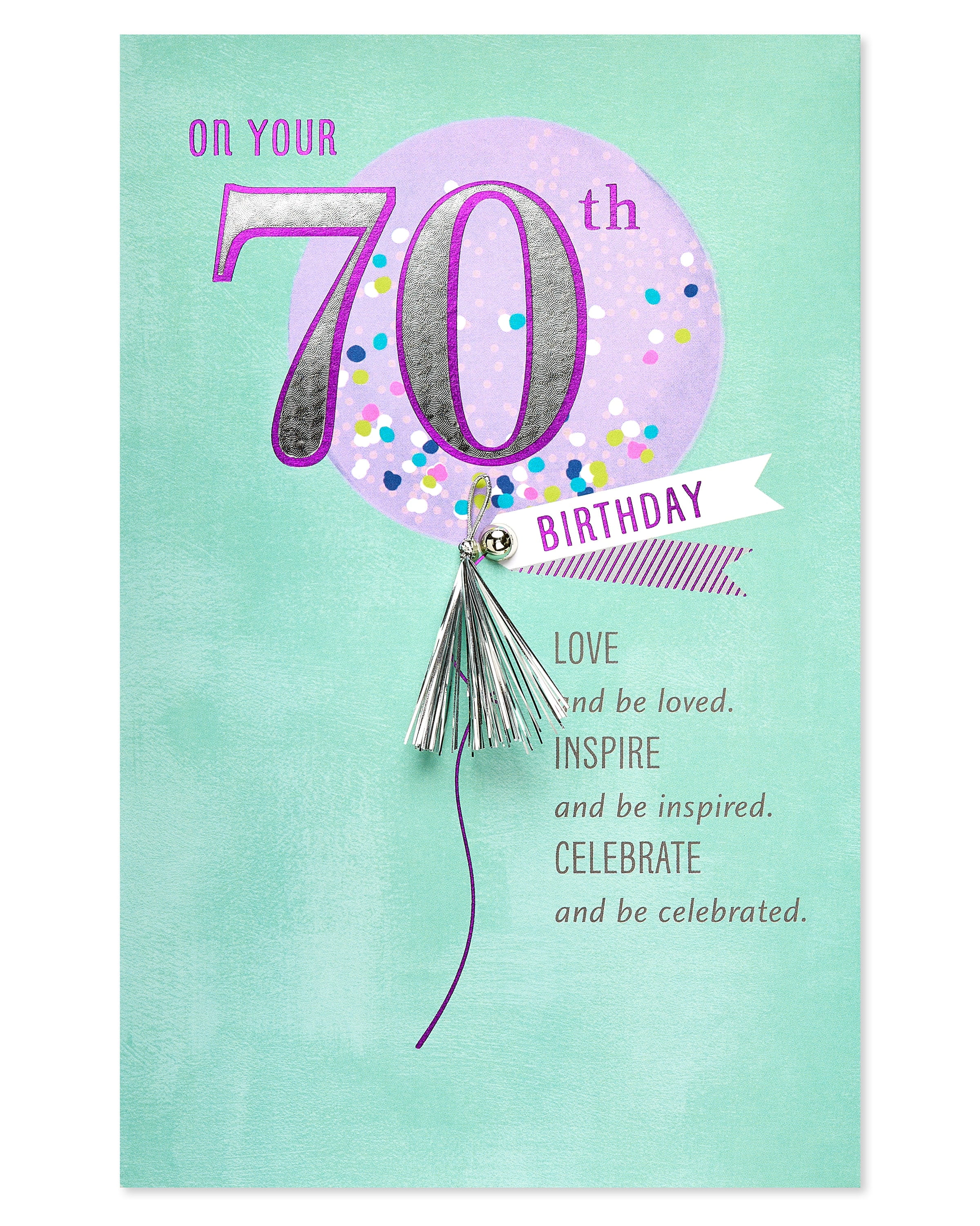 - This 70th birthday greeting card is embellished with silver foil