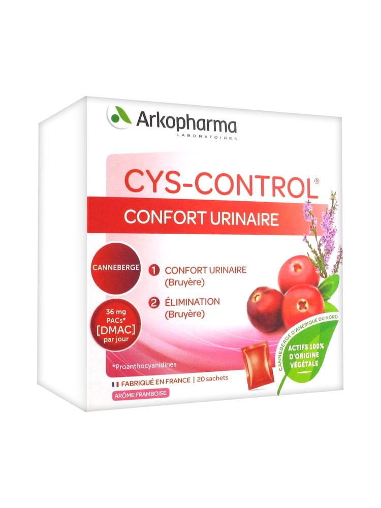 Arkopharma Cys-Control Urinary Comfort 20 Sachets is designed for persons suffering from urinary discomfort, wishing to balance and enhance their urinary system.The daily intake of proanthocyanides by 36 mg contributes to reduce the fixing of certain bacteria E.Coli on the inner walls of the urinary tract (According to AFSSA, French agency for food healthy security. 6 April 04)Arkopharma Cys-Control Urinary Comfort 20 Sachets