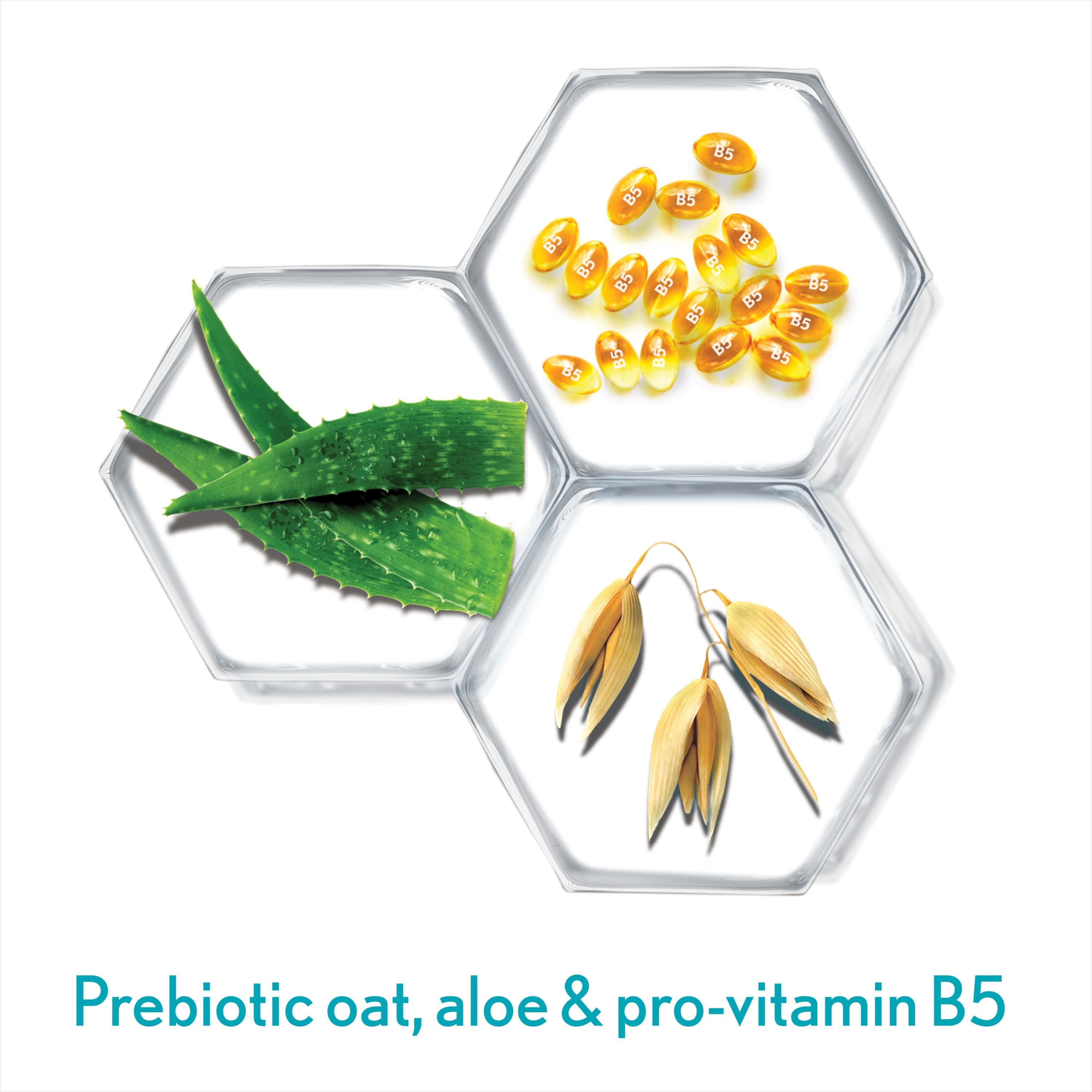 - Formulated with Aloe, known to soothe skin, and pro-vitamin B5 which helps heal dry skin