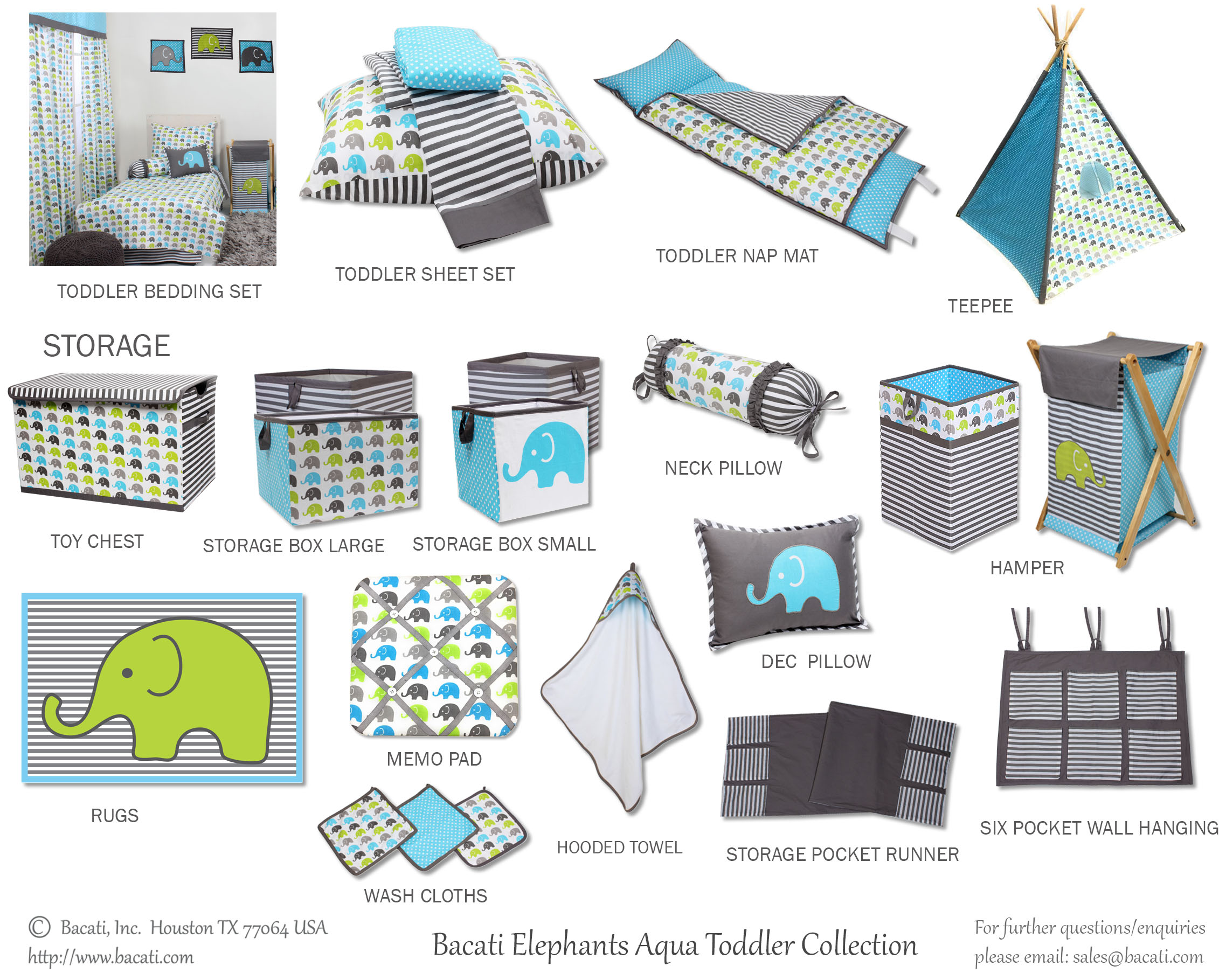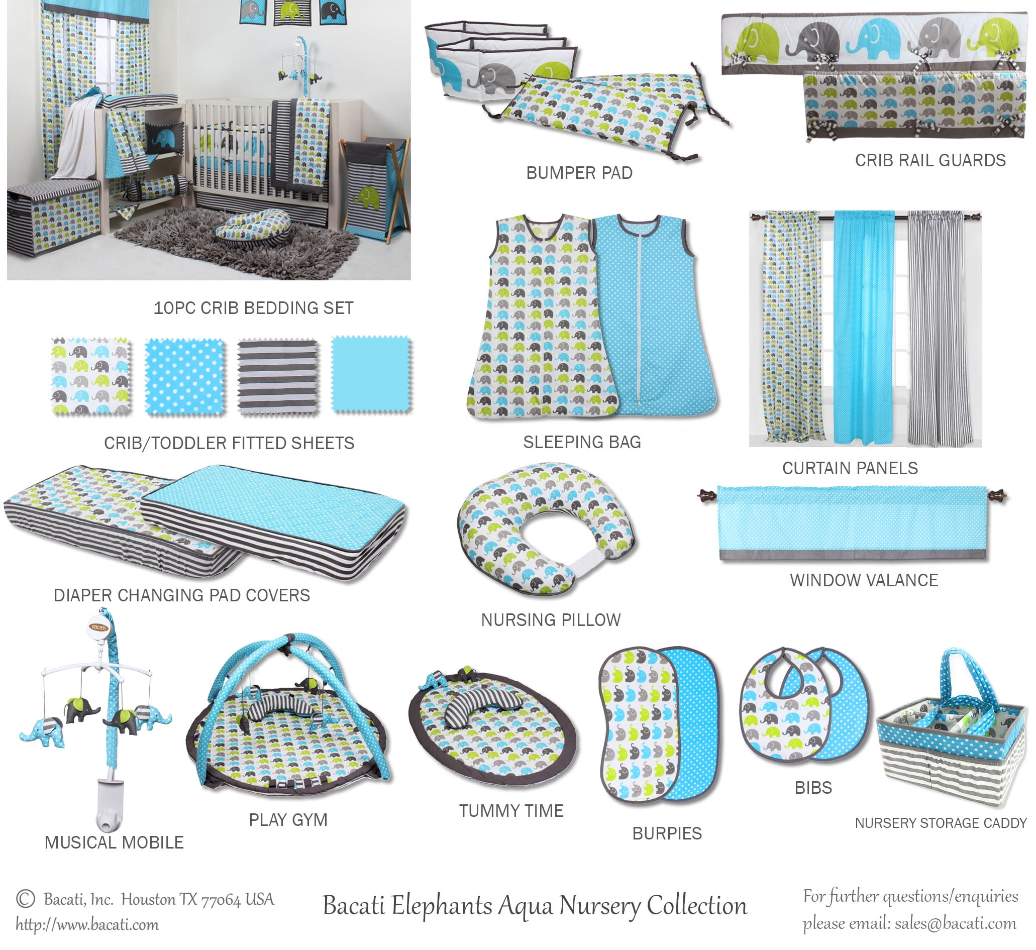 - Aqua/Lime/Grey Mini Elephants pattern adds a nice touch to any home nursery.