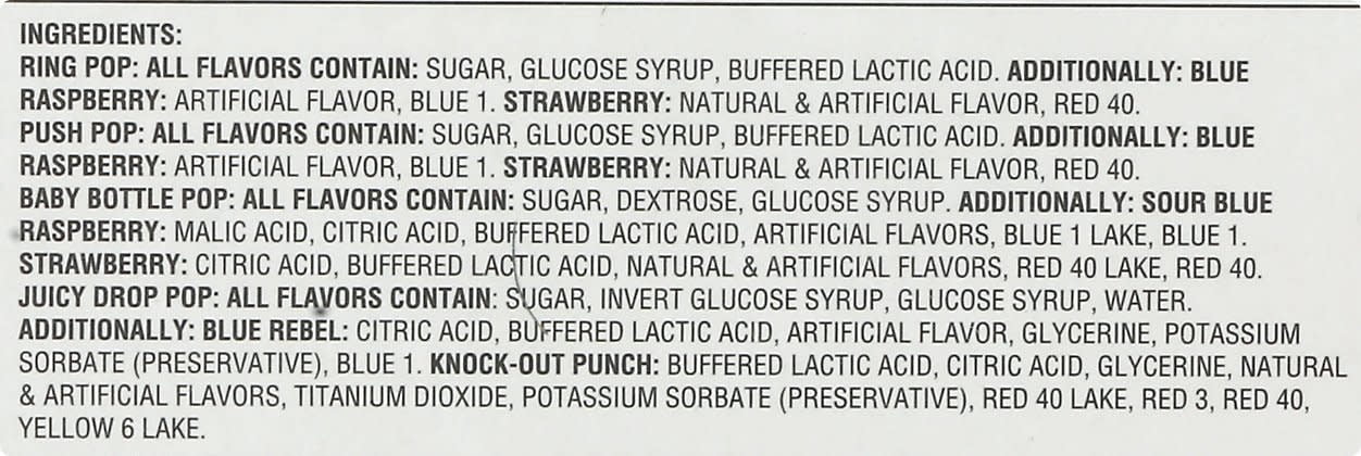- 2 mouth-watering fruity flavors for Baby Bottle Pop, Push Pop and Ring Pops: Strawberry and Blue Raspberry