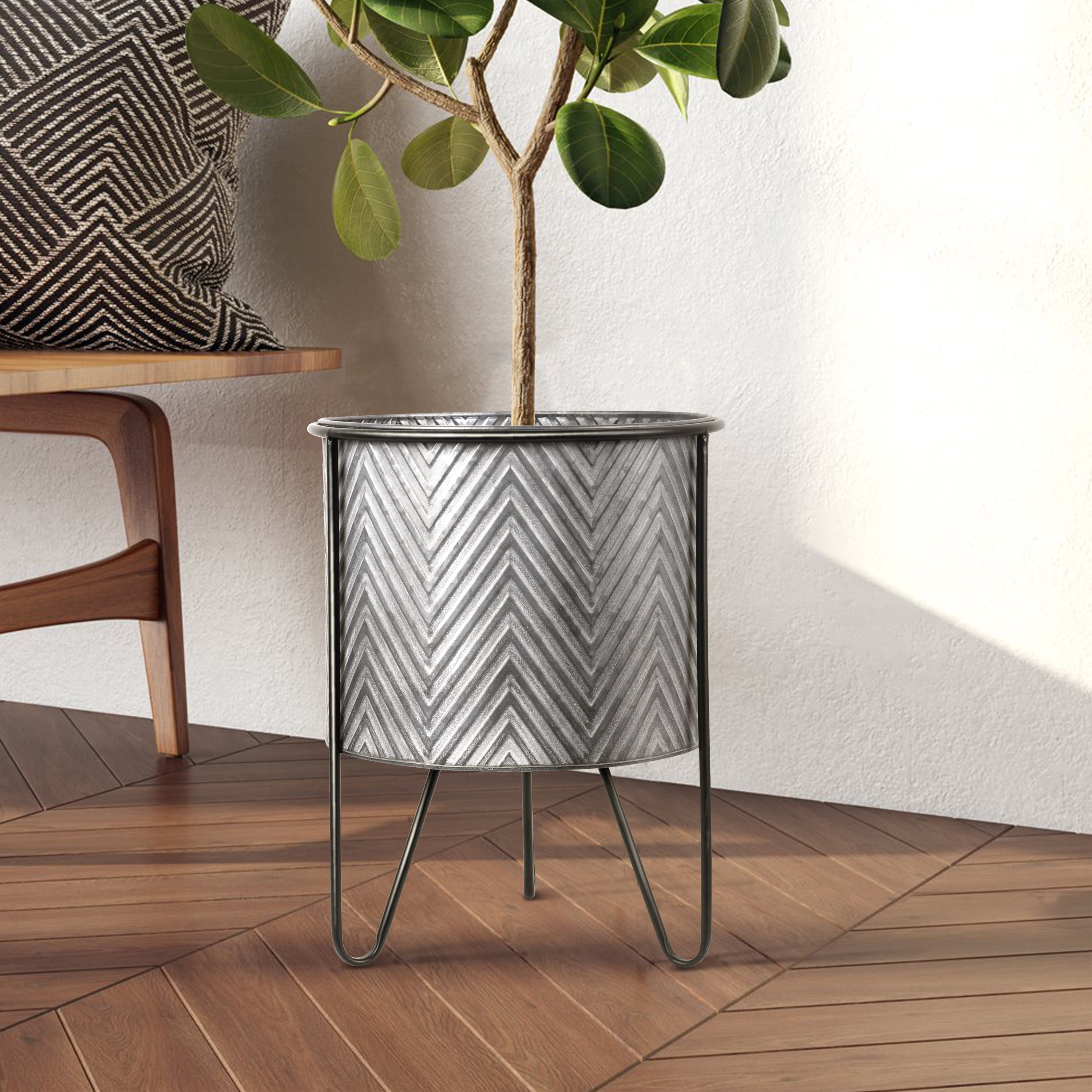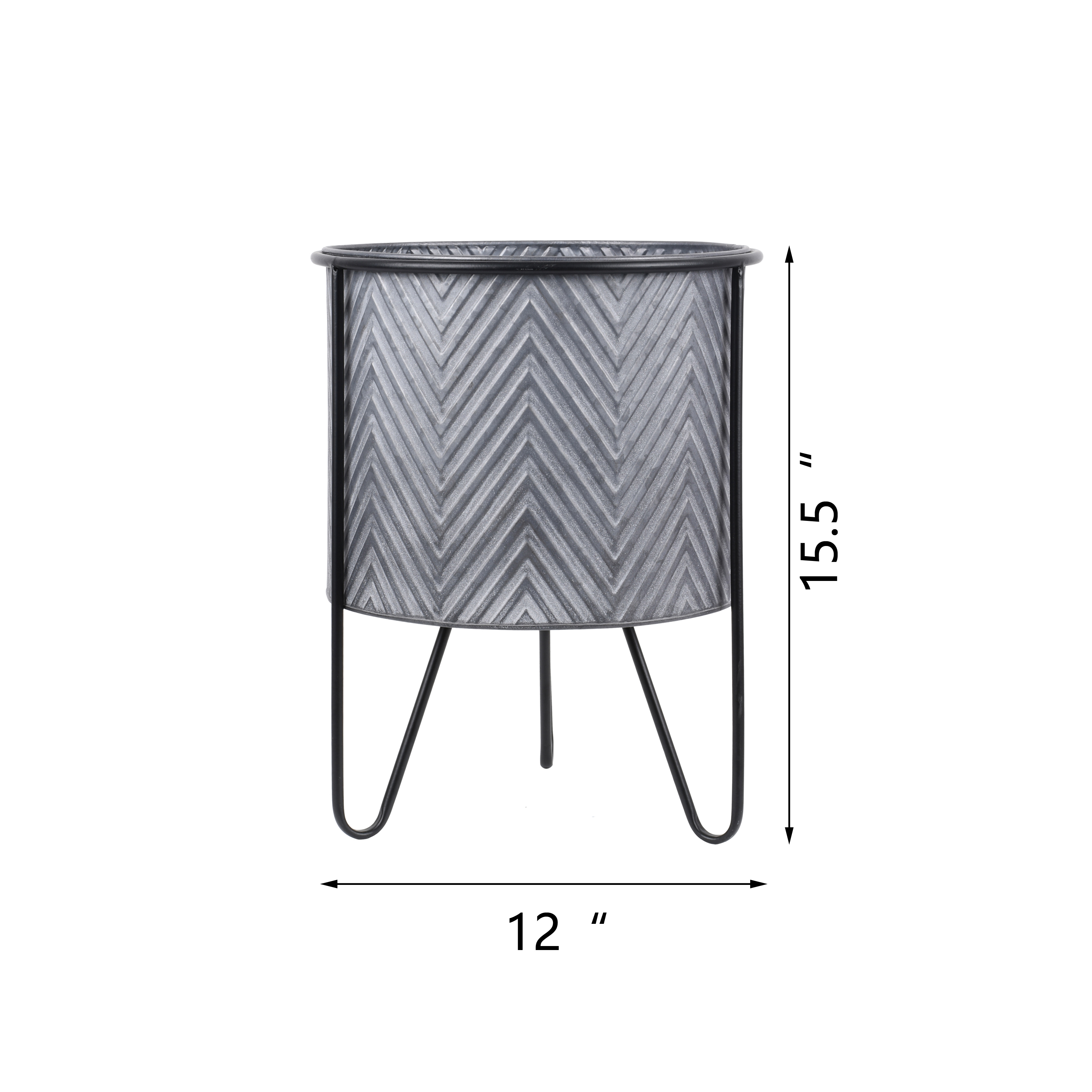 Better Homes & Gardens 8" & 12" Burnished Galvanized Gray Planter with Stand, Set of 2:
