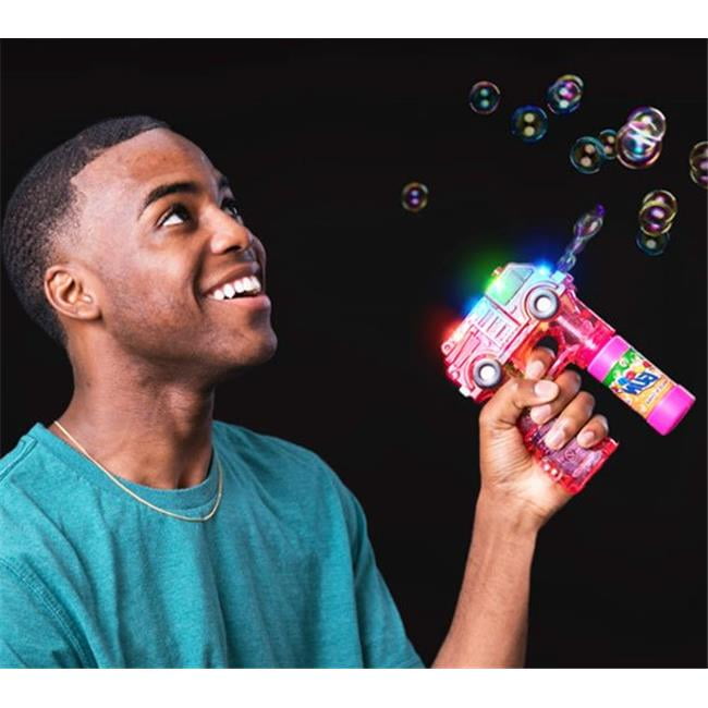 Our Light Up Fire Truck Bubble Machine Blower with Sound Effects is crafted of transparent red plastic embedded with LEDs. The fun and excitement continue when the trigger is pulled and the LEDs start to flash with the sound of real fire truck sirens.