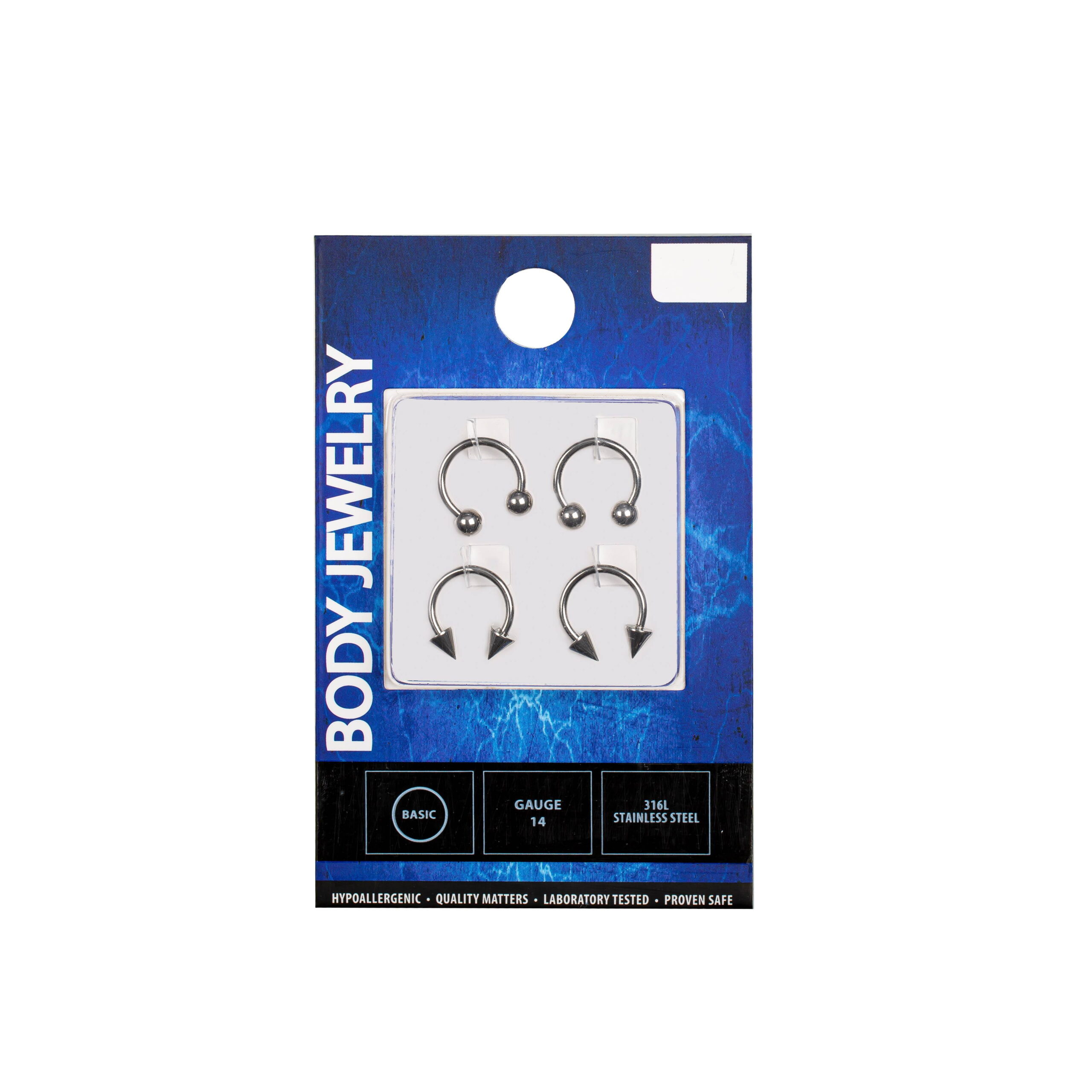 A sterling silver 14 gauge four piece assorted horseshoe nose ring set