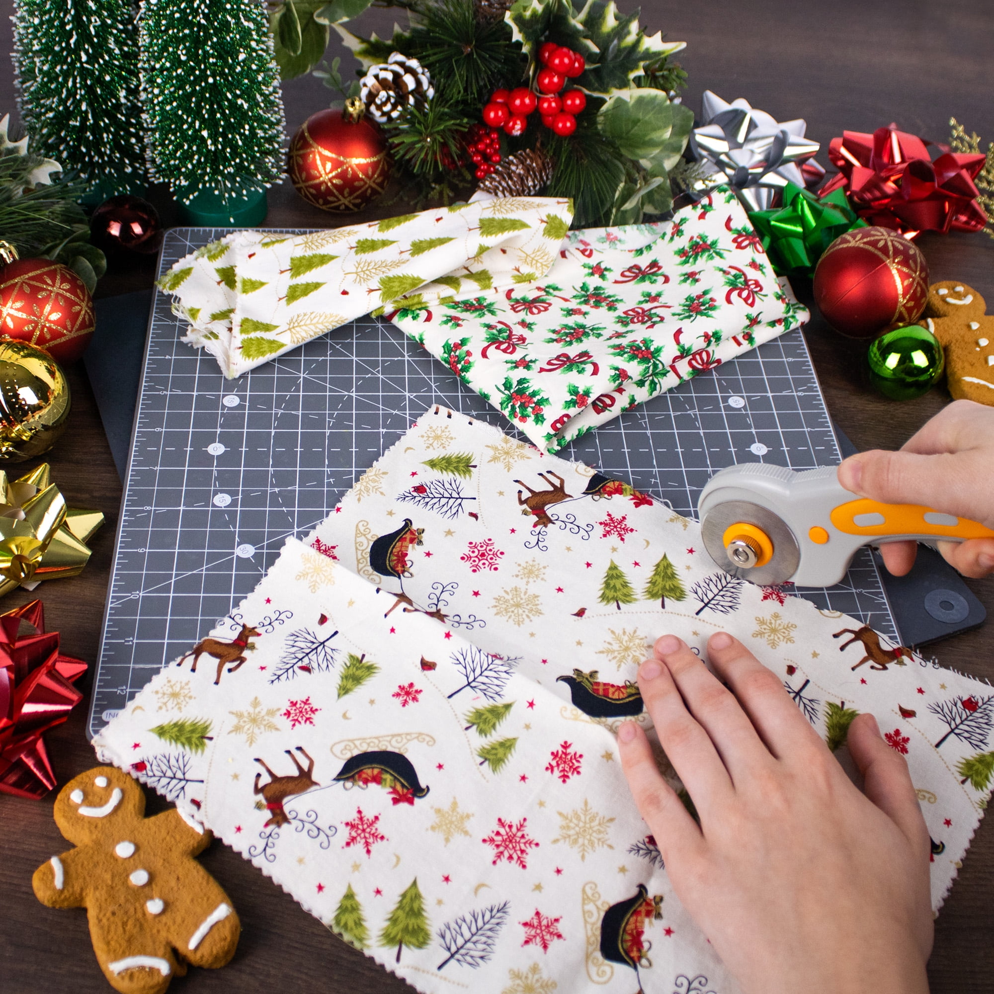 - Includes an ergonomic fabric cutter with 5 sharp rotary cutter blades