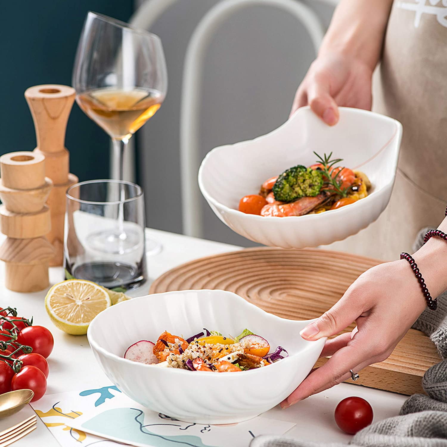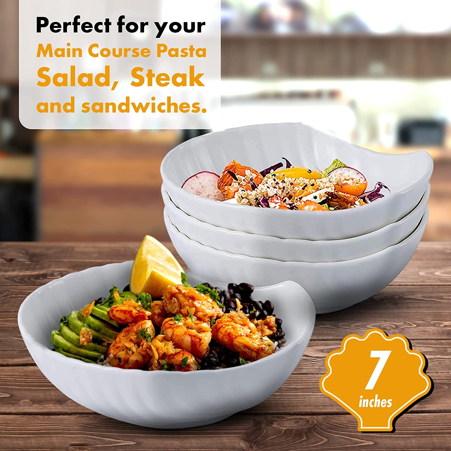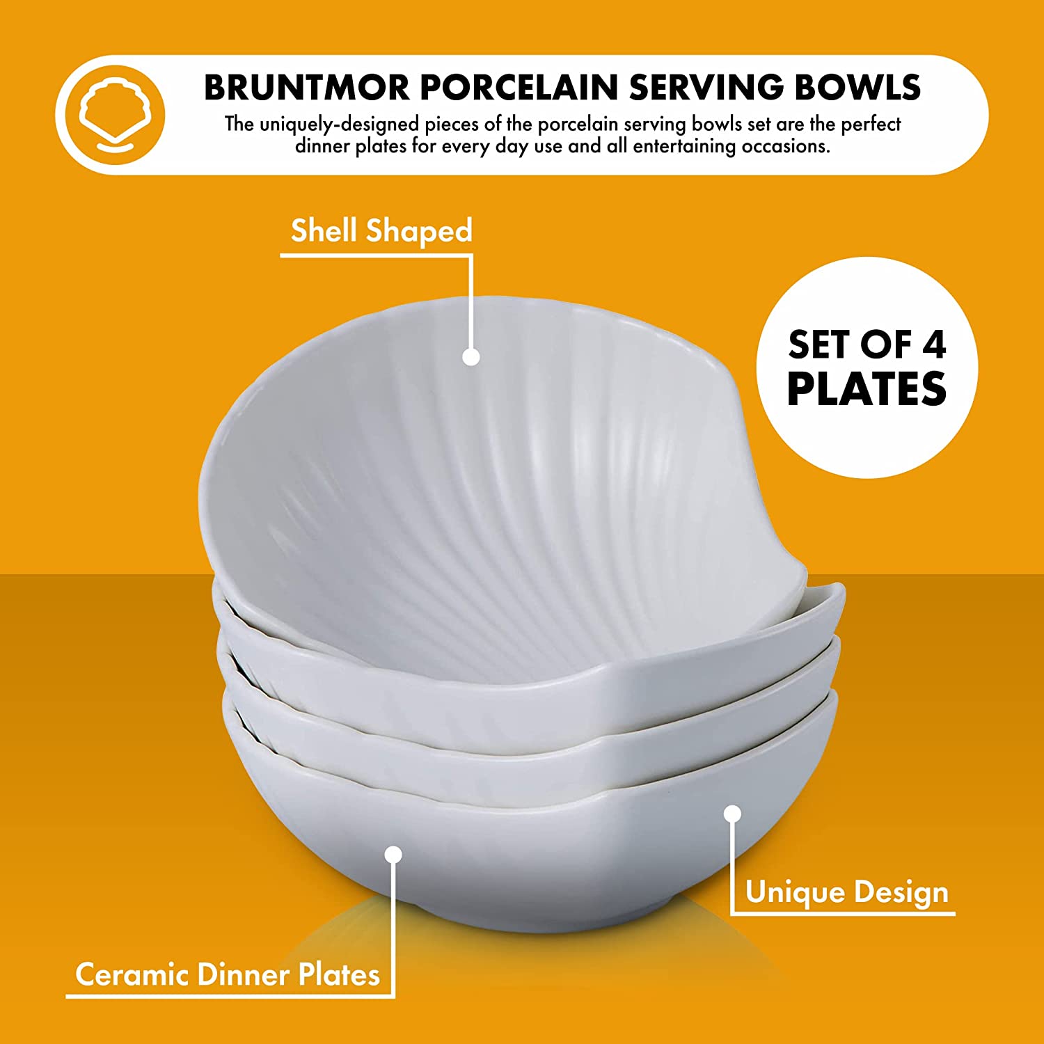Bruntmor 7" Ceramic Shell Shaped Dinner Plates Set of 4 Serving Plates White