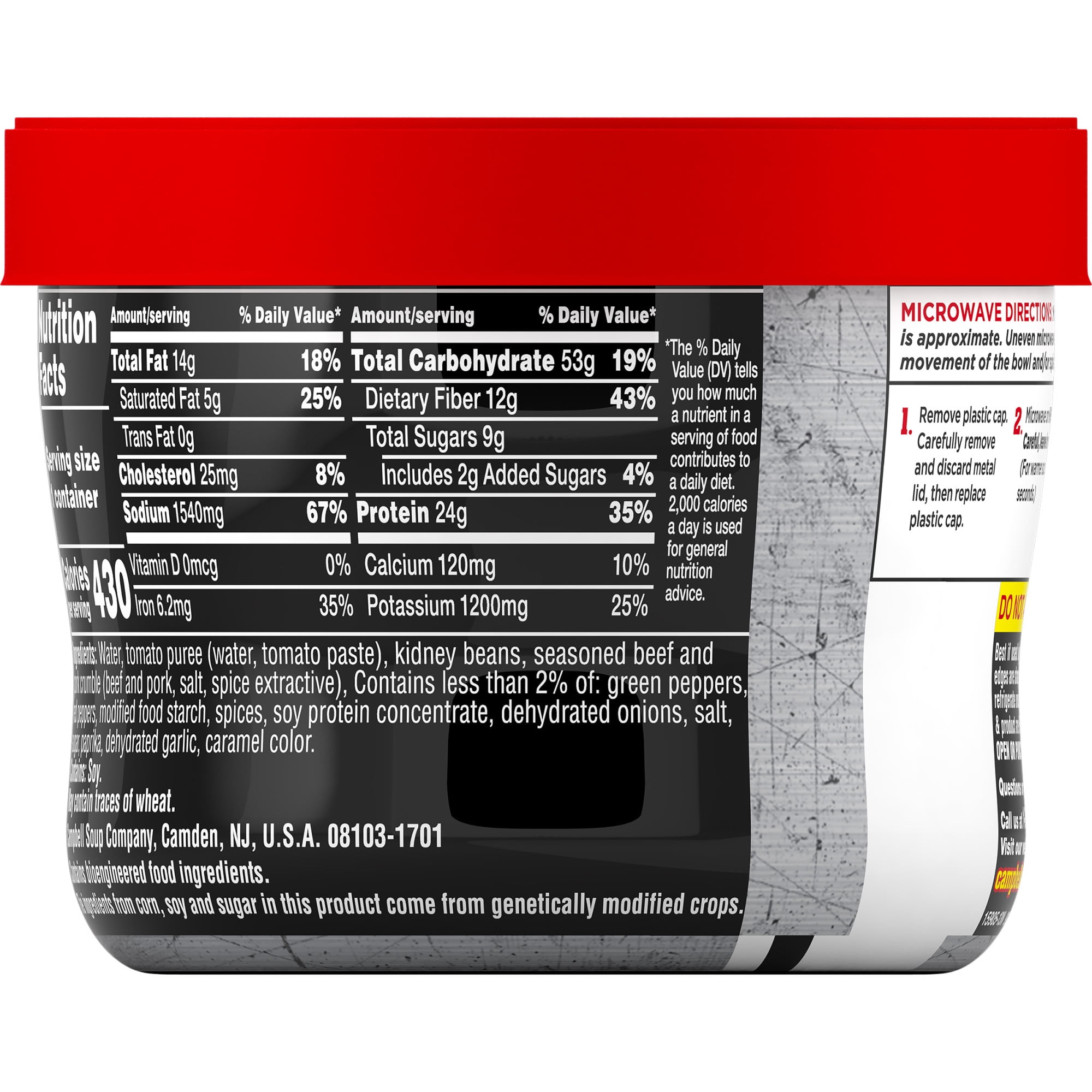 Take our fiery powerhouse on-the-go with Campbell’s ChunkyTM Hot & Spicy Chili with Beans Microwavable Bowl. We give hunger a spicy beatdown by packing our portable bowls with hearty ingredients like kidney beans, seasoned beef and red and green peppers.