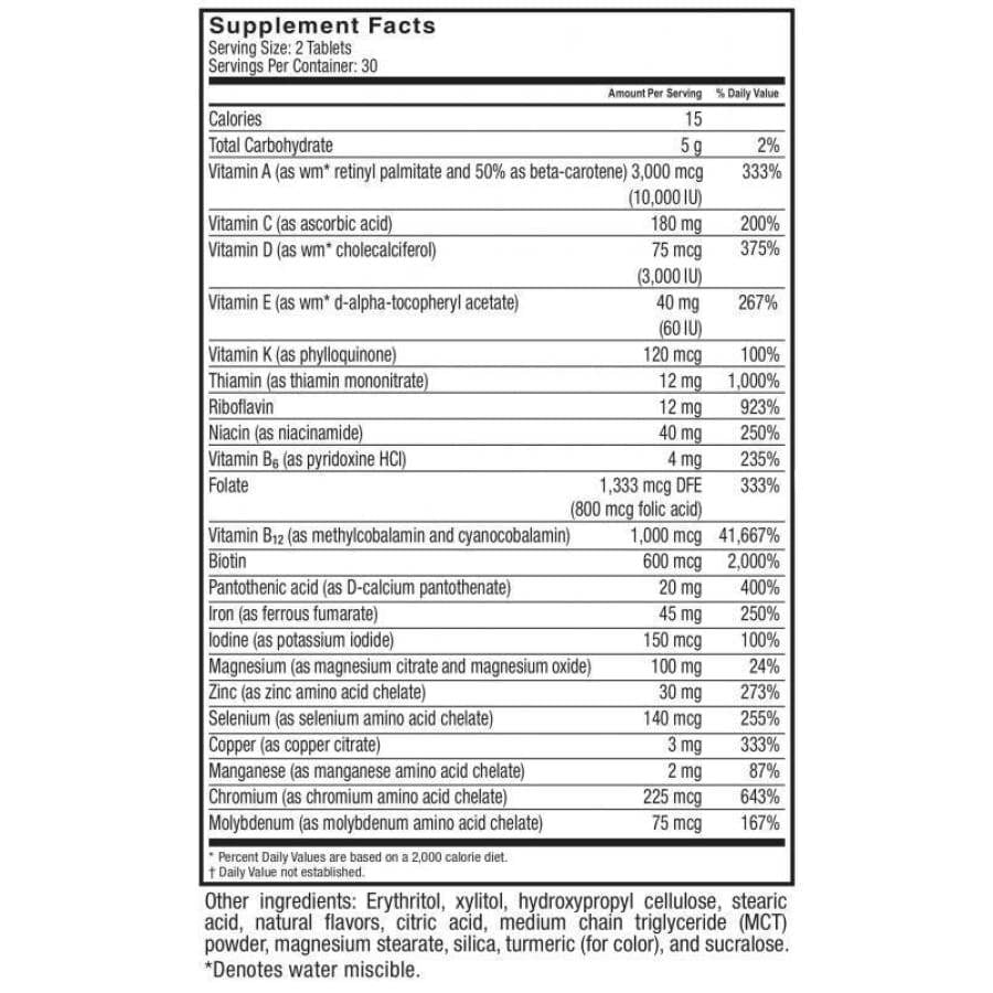 Celebrate’s Multi-Complete 45 contains all of the vitamins and minerals that are in Celebrate’s original Multivitamin formula PLUS 45 mg of iron per daily serving and an increased level of vitamin B-12 (1,000 mcg/day). This product is perfect for those patients who need extra iron and may be looking to avoid taking a separate iron supplement. It is important to keep in mind that this product may NOT be taken at the same time as calcium to prevent absorption interference. This integrated formula provides maximum bioavailability as Celebrate has carefully selected each vitamin and mineral level and form to enhance interaction and absorption.