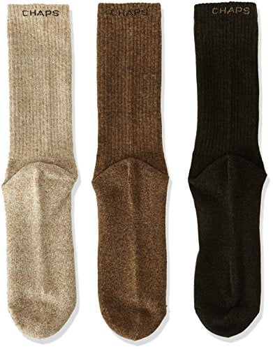 Chaps Men’s Assorted Solid Mock Rib Casual Crew Socks (3 Pack), khaki, Shoe Size: 6-12