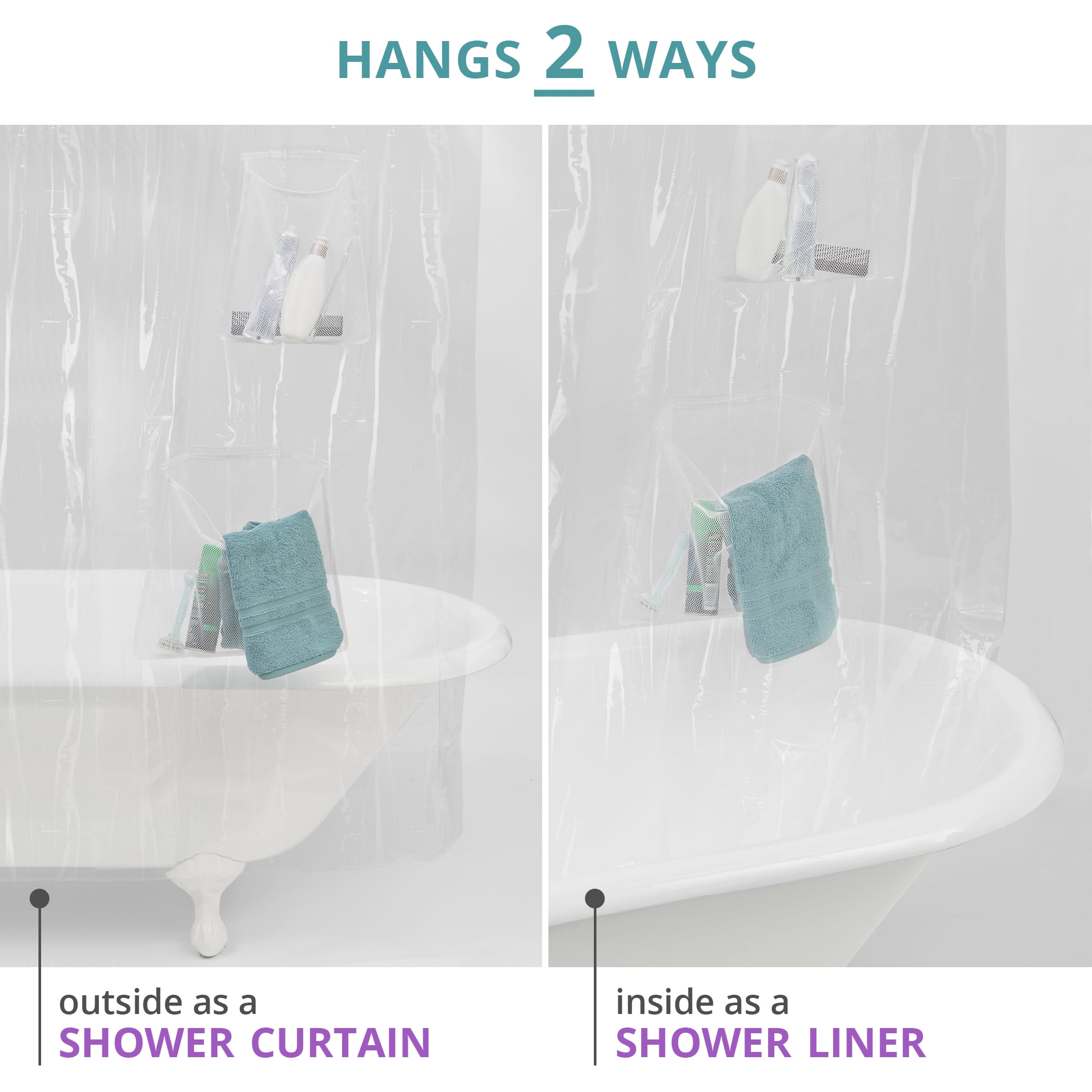 - Clear shower curtain with pockets is ideal for households with multiple people who use many different products at shower time