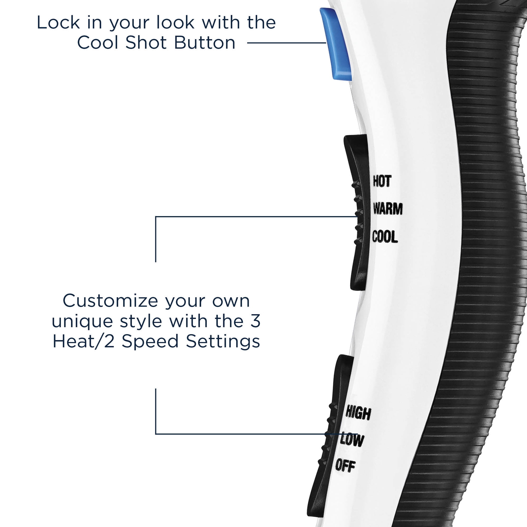 Conair Style & Shine Thermal Tourmaline & Ceramic Hair Dryer, Ionic, 1875 Watts, White