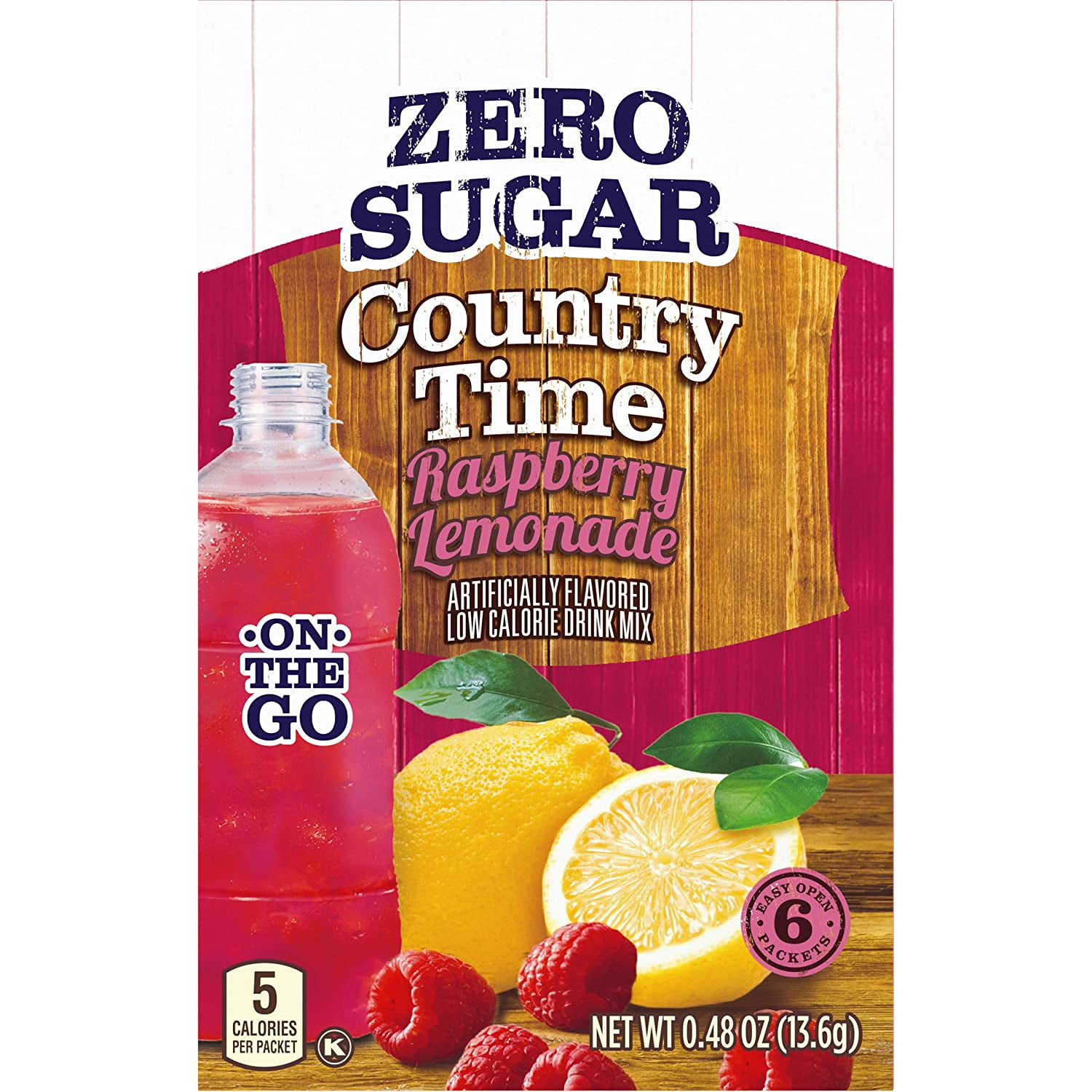 Seventy-two packets of Country Time On-The-Go Zero Sugar Raspberry Lemonade Powdered Drink Mix Country Time On-The-Go Zero Sugar Raspberry Lemonade Drink Mix helps keep you cool on hot days Convenient raspberry lemonade powder is ideal for quick mixing anytime, anywhere Crisp, citrusy lemonade flavor quenches your thirst Contains zero sugar and 5 calories Store drink mix in your gym bag, briefcase or desk drawer Convenient individually portioned packets are perfect for on the goCountry Time Sugar-Free Raspberry Lemonade On-The-Go Powdered Drink Mix 72 Count