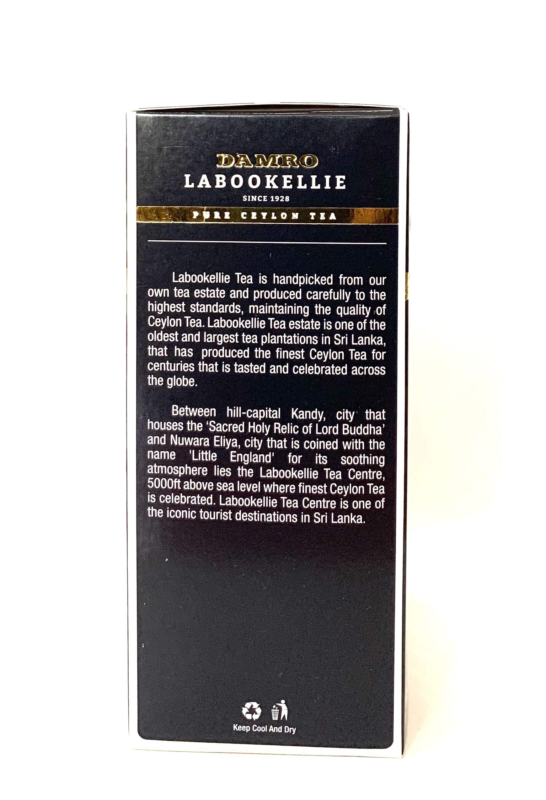 Damro Labookellie Tea is handpicked from our own tea estate and produced carefully to the highest standards, maintaining the quality of Ceylon Tea. Damro Labookellie Tea estate is one of the oldest and largest tea estates in Sri Lanka, that has produced the finest Ceylon Tea for centuries that is tasted and celebrated across the globe. Damro Labookellie Tea Estate is located in the Nuwara Eliya District with a salubrious climate and falling within the Dimbula growing region; it also could be considered as the most renowned name in Ceylon for Tea. 200 G Net Weight Loose Black GrainyTea – Large Over 5000 Feet High Grown Tea 100% Pure Natural Ceylon Black TeaDamro Labookellie Tea is handpicked from our own tea estate and produced carefully to the highest standards, maintaining the quality of Ceylon Tea. Damro Labookellie Tea estate is one of the oldest and largest tea estates in Sri Lanka, that has produced the finest Ceylon Tea for centuries that is ta