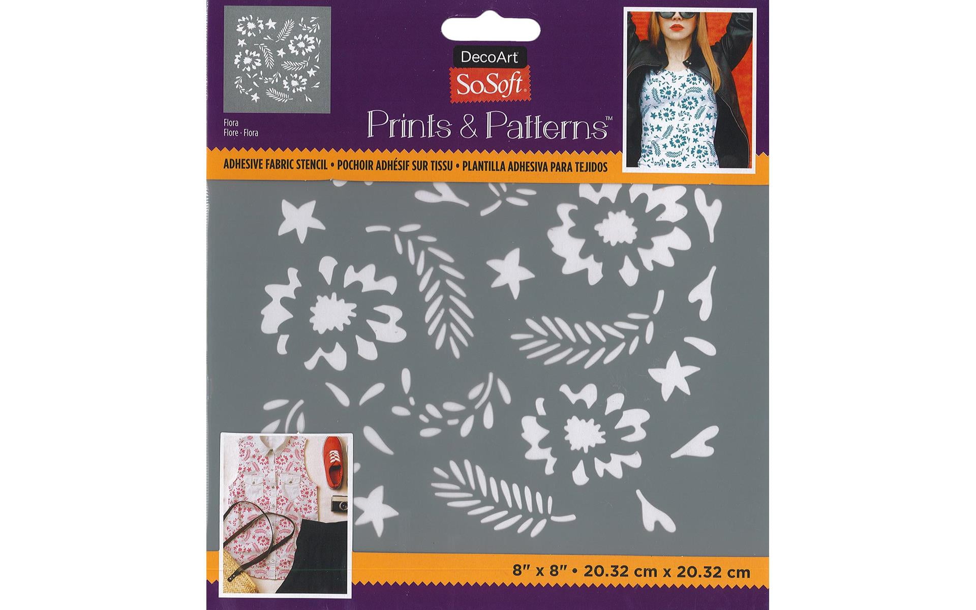 DecoArt Stencils to paint on any project It is as easy as 1-2-3 Basecoat the project position the stencil and apply paint These durable stencils can be used over and over Great for kids as well as adults SoSoft Fabric 8 x 8 Flora- Upstyle your fashDFS201-K DECOART SOSOFT FABRIC STENCIL 8X8 FLORA