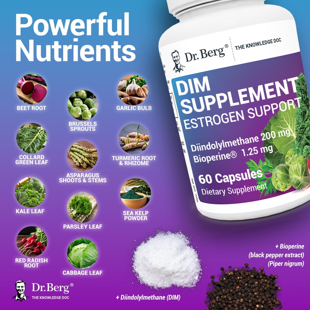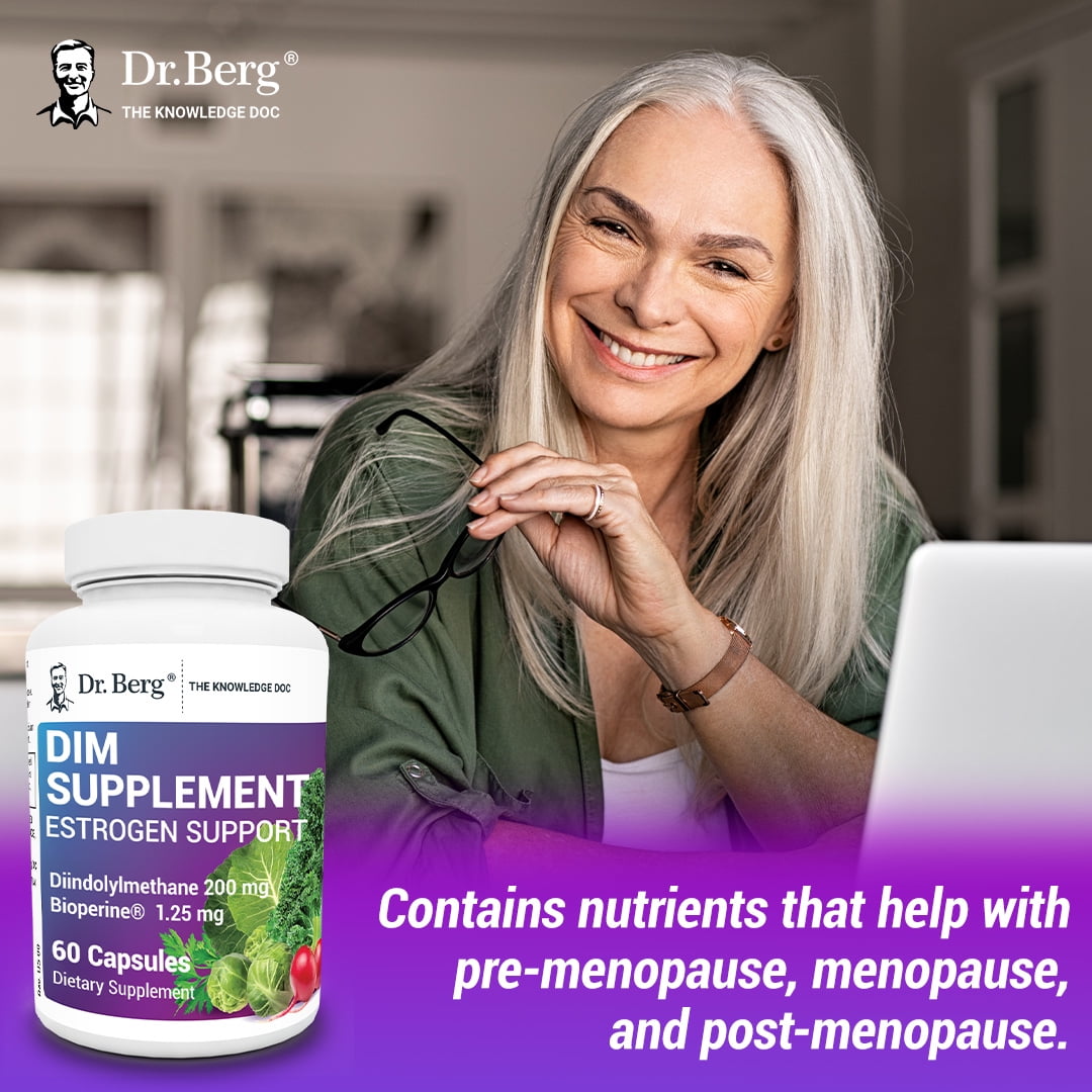 Restore your energy and lift your mood during menopause with Dr. Berg’s DIM Supplement Estrogen Support. It supplies your body with 12 powerful nutrients that promote normal hormone levels before, during, and after menopause. If you’re struggling to keep your skin health, mood, and energy levels in check, this supplement is perfect for you. Each bottle contains 60 nutrient-packed capsules.