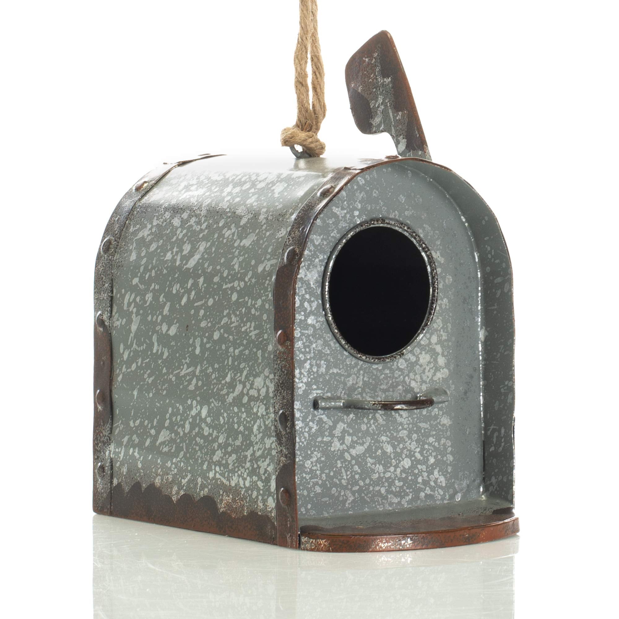 Drew DeRose Primitive Mailbox Galvanized Silver Tone 9 x 8 Metal Birdhouse