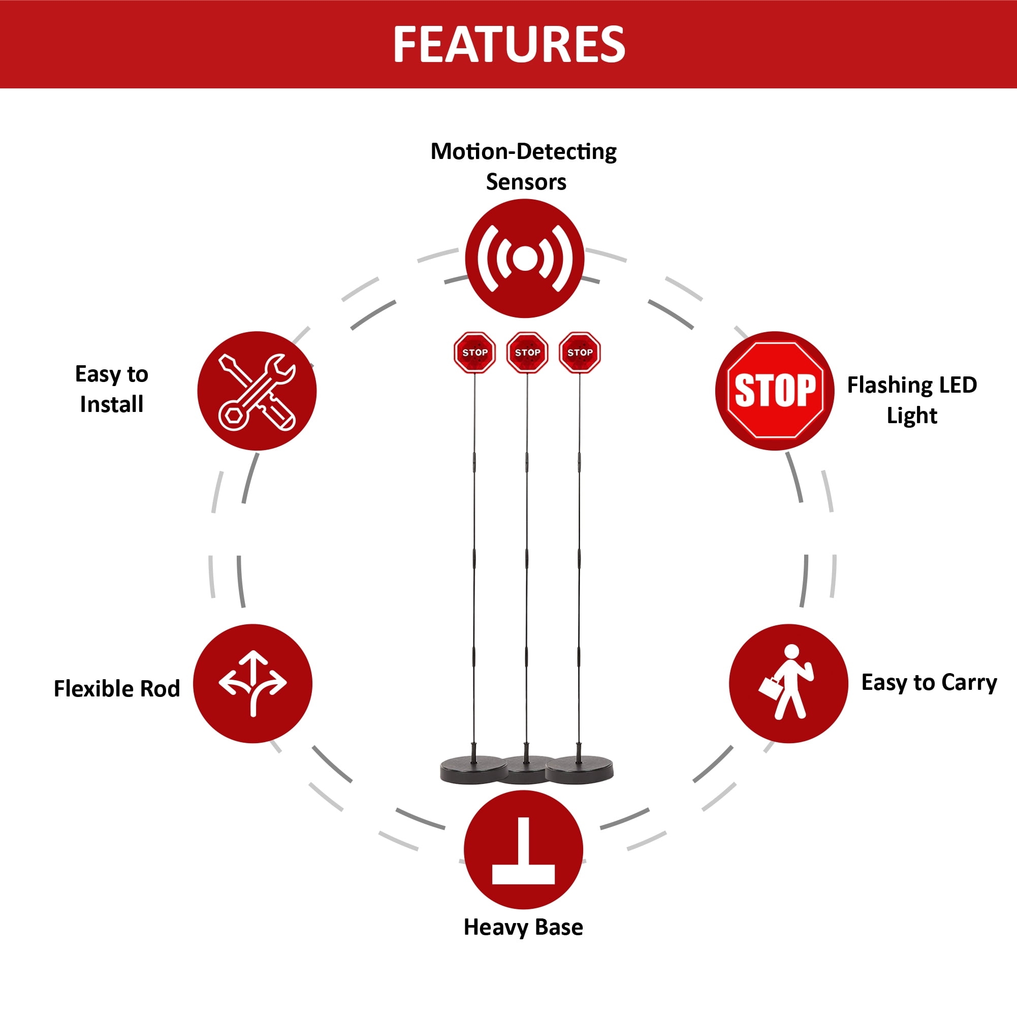 Ekarro modern flashing LED stop sign is the perfect parking assistant system for any garage. just set up the stop sign so it barely touches your front bumper. when you pull the car into the garage, simply tap the parking assistant with your bumper and the lights will signal to alert you that the car has reached the correct stopping point.