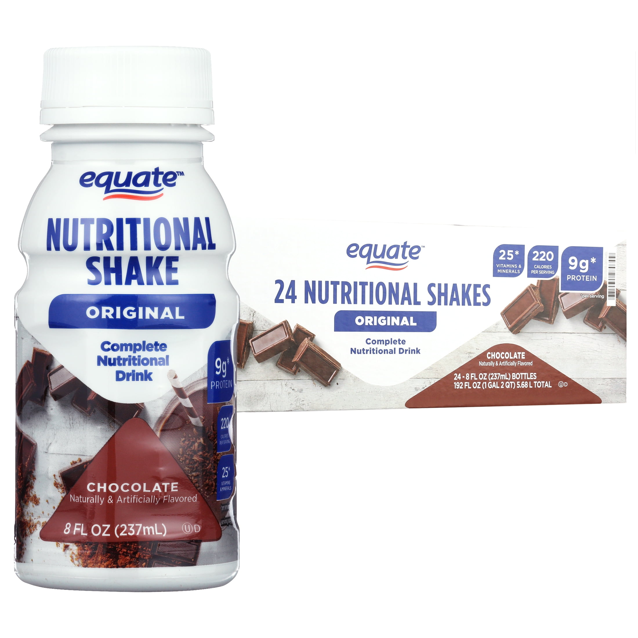 Equate Original Meal Replacement Nutritional Shakes, Chocolate, 8 fl oz, 24 Count