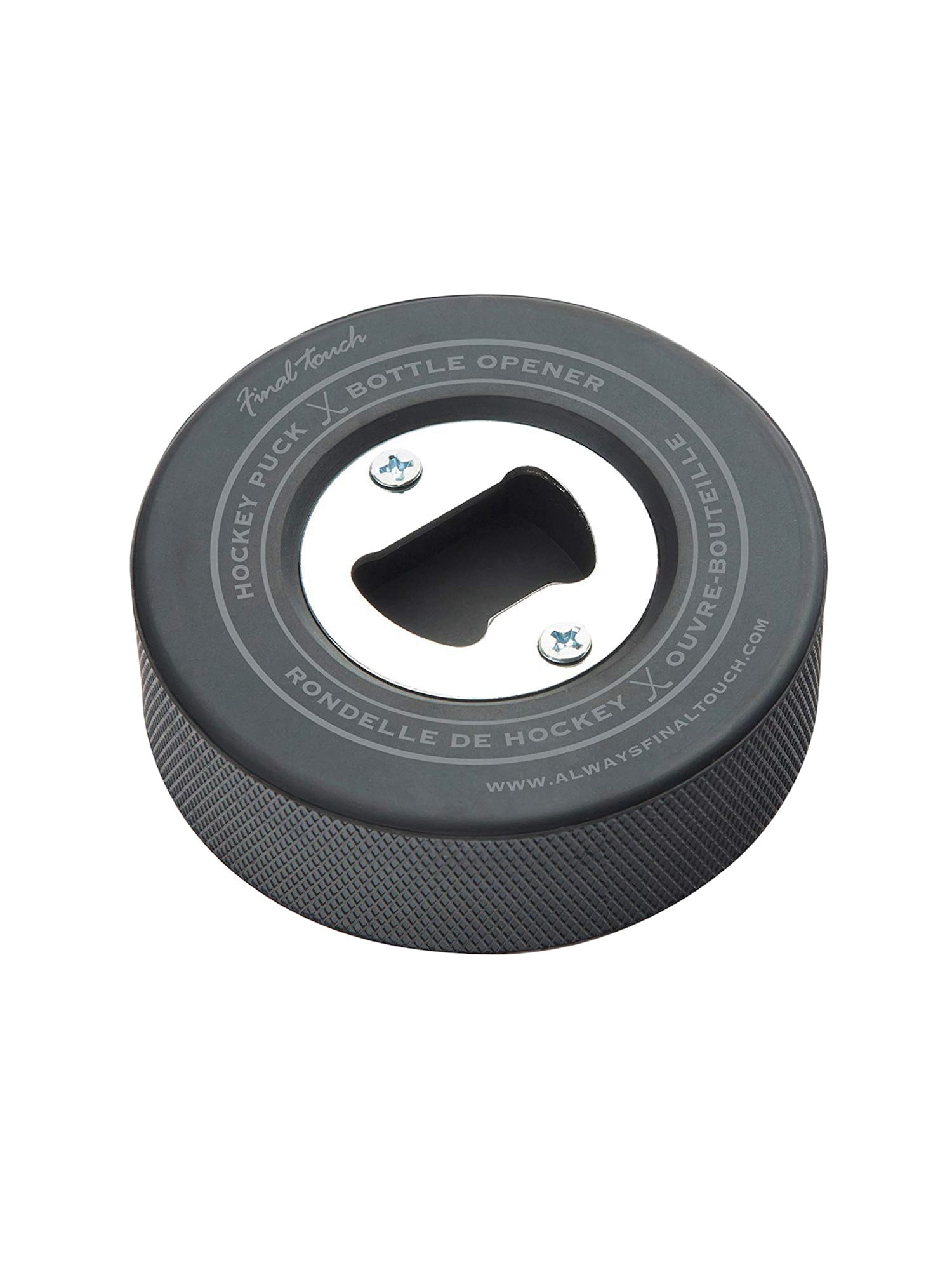 Final Touch Hockey Puck Bottle Opener, Regulation Size & Weight, Rubber & Steel