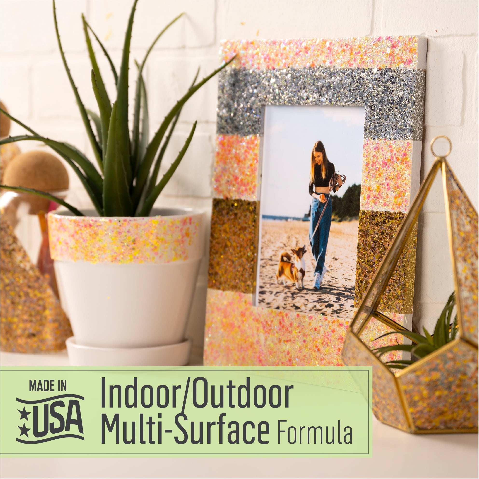 - EASY APPLICATION -This dazzling glitter acrylic paint goes on smoothly to a variety of surfaces including wood, canvas, ceramics, metal and more – provides an even layer of sparkling coverage! Great for indoor and outdoor projects!