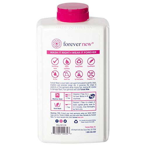 Product details Promotes longer life in all fine washables, Powdered, concentrated wash leaves no soap residue. Gently cleans and brightens, Free of parabens, phthalates, phosphates, SLES & dyes. Not tested on animals. Brand: Forever New, Style Number: 10032. Wash: Plant-based, biodegradable powder cleanser.KEEP OUT OF REACH OF CHILDREN.FOREVER NEW Granular Detergent Powder – Delicate Laundry Care Wash – Original Scented, 32 Oz