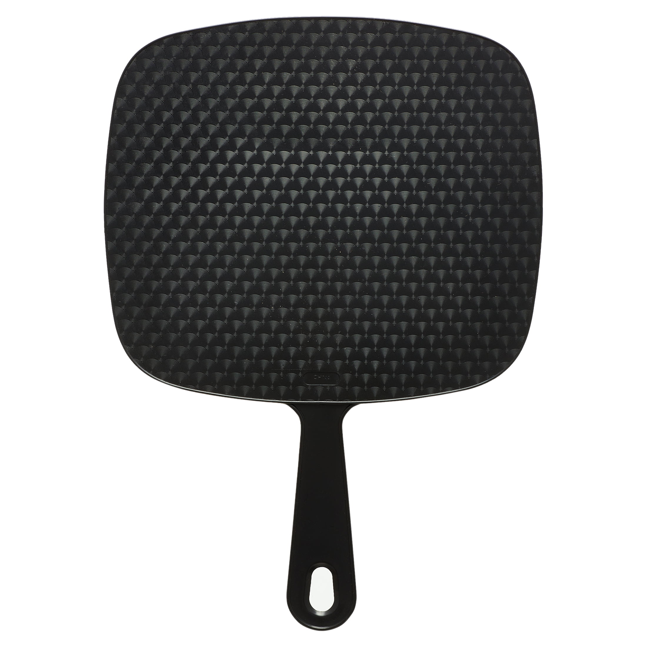 ForPro Large Hand Mirror is a single-sided hand-held mirror that features a long, comfortable grip handle. The large square face provides a clear reflection of hard-to-see places without distorting images. The hand mirror is the ideal way to reveal final creations to clients.• Features a long, comfortable grip handle and large square face; • Provides a clear reflection without distortion; • Mirror is encased in a solid black frame made from thick plastic; • Features a hang hole for easy storage; • Lightweight, weighs only 9 ounces; • 9” W x 12” L;