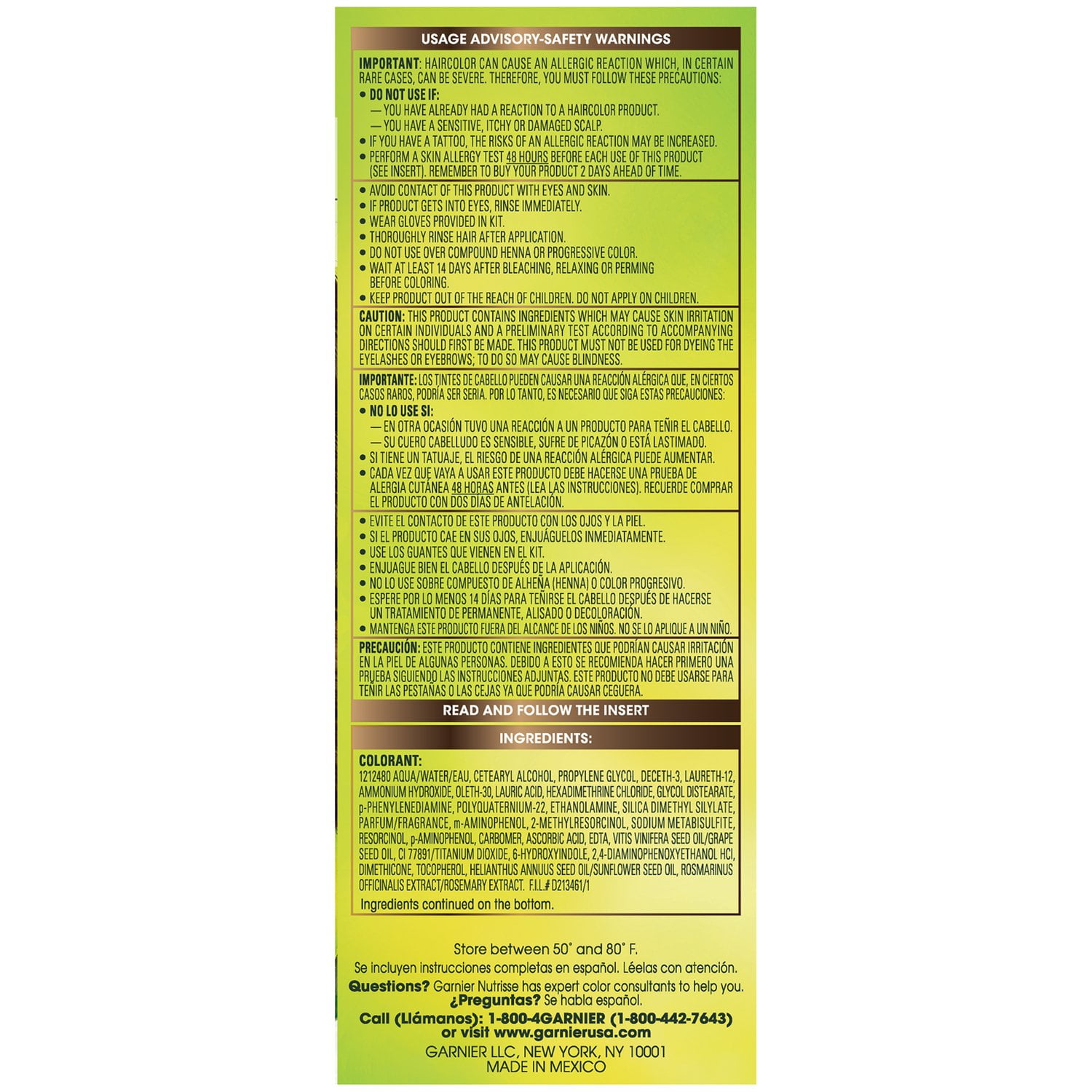 See why nourished hair means better color.Garnier Nutrisse Nourishing Color Creme penetrates deep into hair fibers to nourish and condition so hair takes color better and holds it longer, for richer, longer lasting haircolor from root to tip and 100% gray coverage. Nutrisse hair color creme comes with an ampoule of grapeseed oil to start nourishing hair while you color. The non-drip formula spreads easily and smells great and the after-color conditioner is infused with 3 fruit oils – avocado, olive and shea – for silkier, shinier, more nourished hair. Ingredients: Water, Cetearyl Alcohol, Propylene Glycol, Deceth 3, Laureth 12, Ammonium Hydroxide, Oleth 30, Lauric Acid, Hexadimethrine Chloride, Glycol Distearate, P Phenylenediamine, Polyquaternium 22, Ethanolamine, Silica, Dimethyl Silylate, Titanium Dioxide (CI 77891), 2,4 Diaminophenoxyethanol HCl, M Aminophenol, P Aminophenol, Ascorbic Acid, Sodium Metabisulfite, 6 Hydroxyindole, 2 Methylresorcinol, Dimethicone, Pentasodium Pentetate, Fragrance, Carbomer, Resorcinol, Vitis Vinifera (Grape) Seed OilGarnier Nutrisse Nourishing Color Creme, Darkest Golden Brown [33] 1 ea